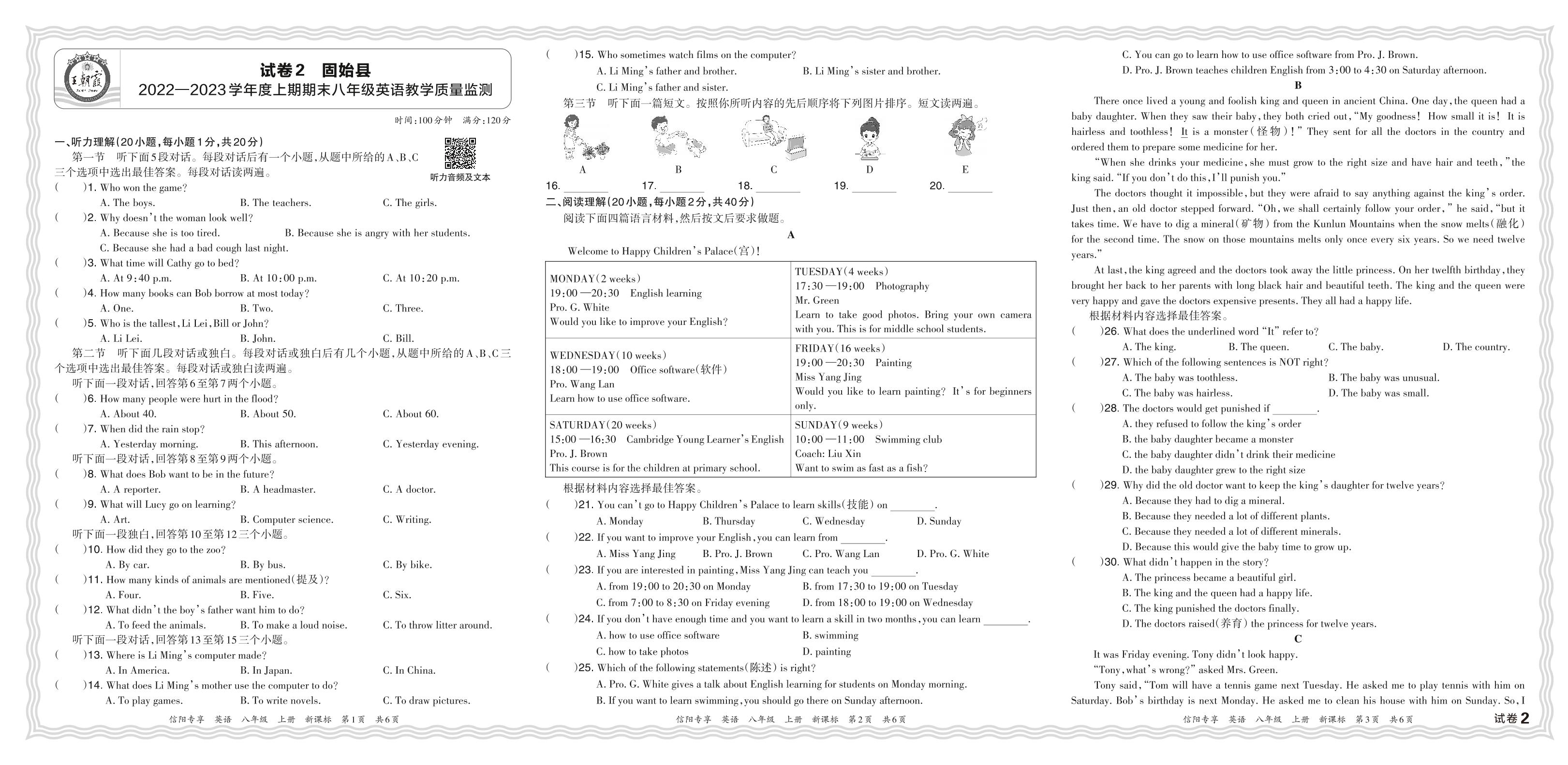 河南省信阳市固始县2022-2023学年度上期期末八年级英语教学质量监测(新课标版)【2】