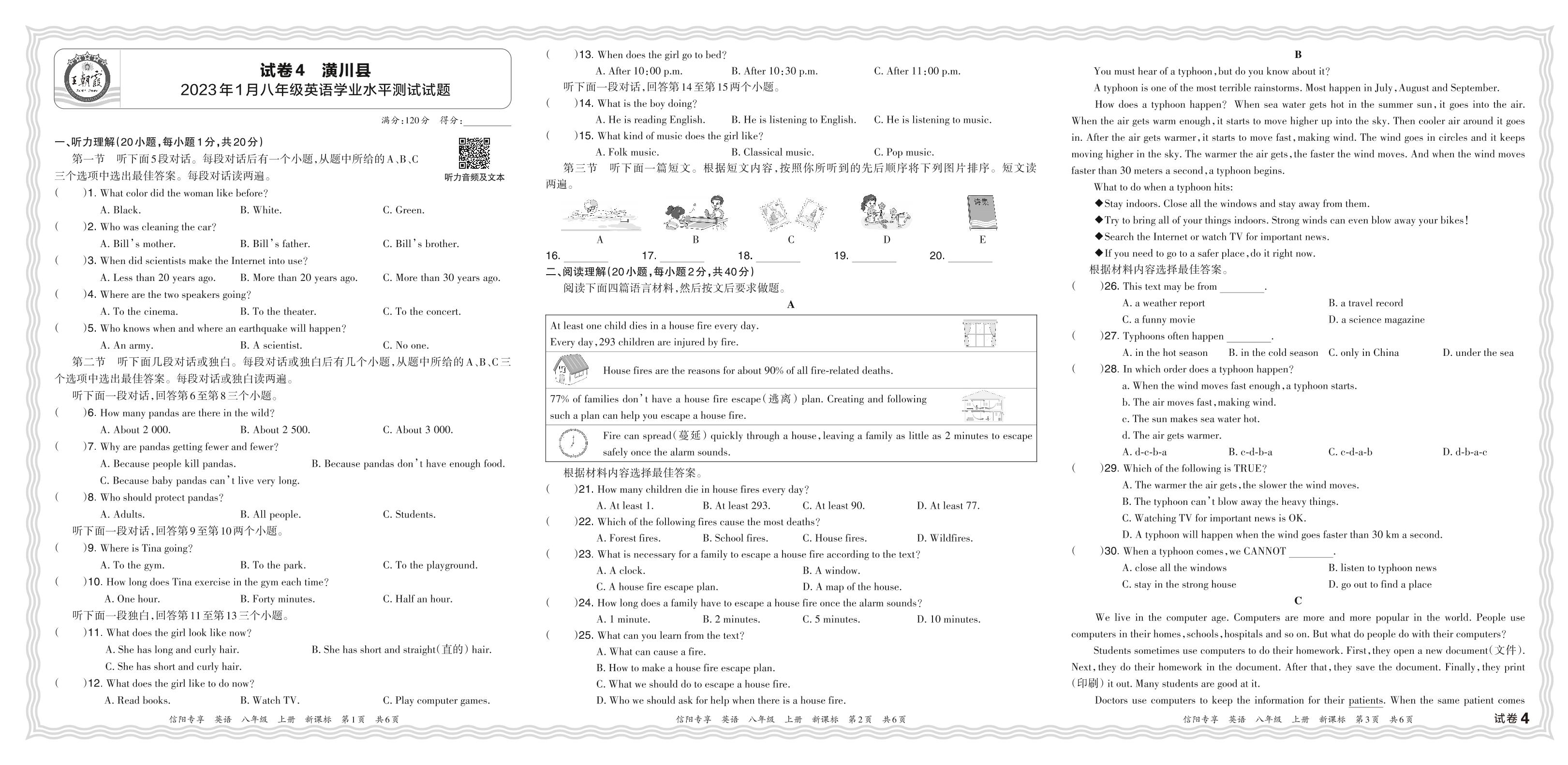 河南省信阳市潢川县2023年1月八年级英语学业水平测试试题(新课标版)【4】