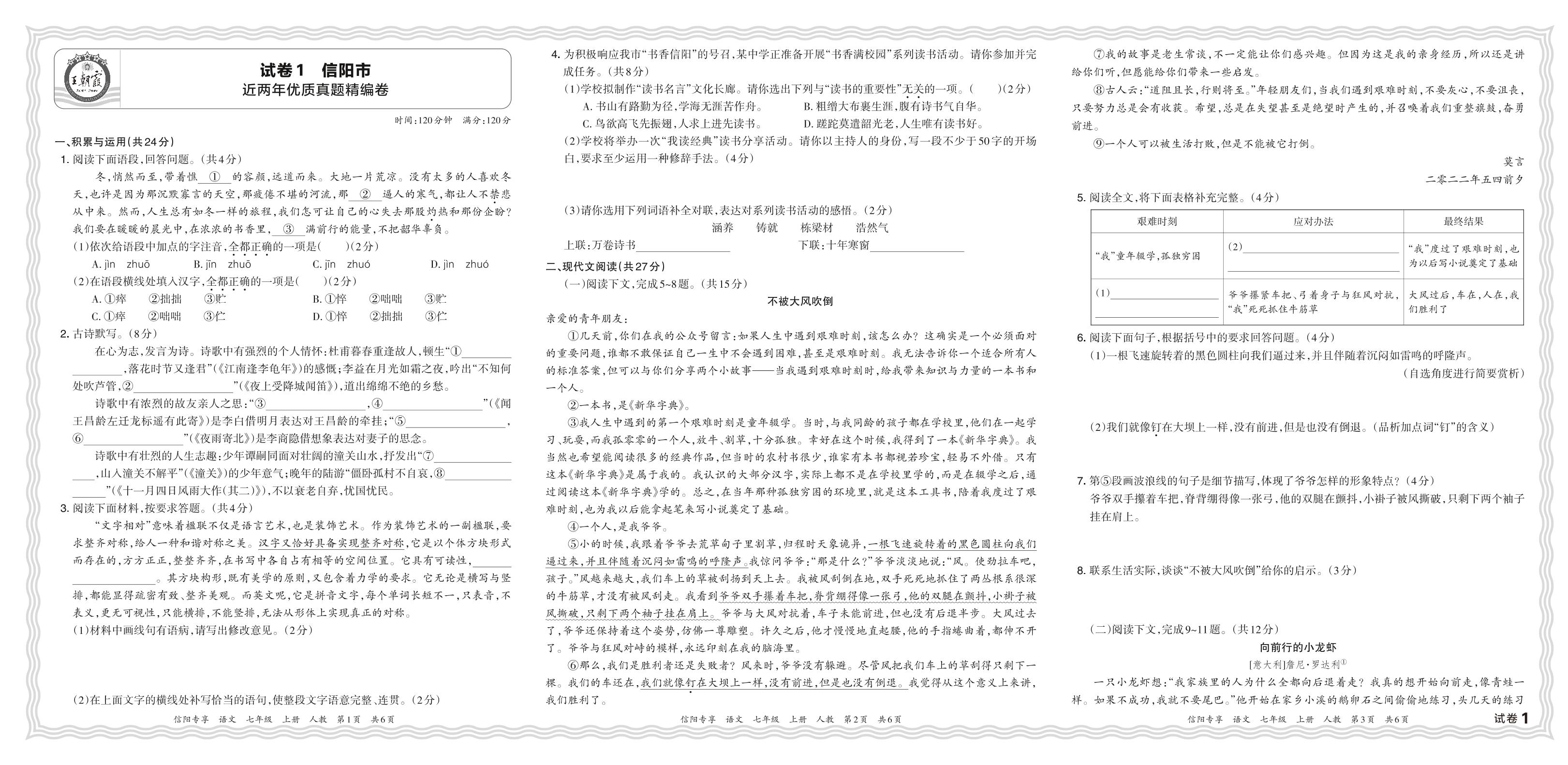 2023秋河南省信阳市近两年优质真题精编卷七年级上册期末语文(人教版)【1】