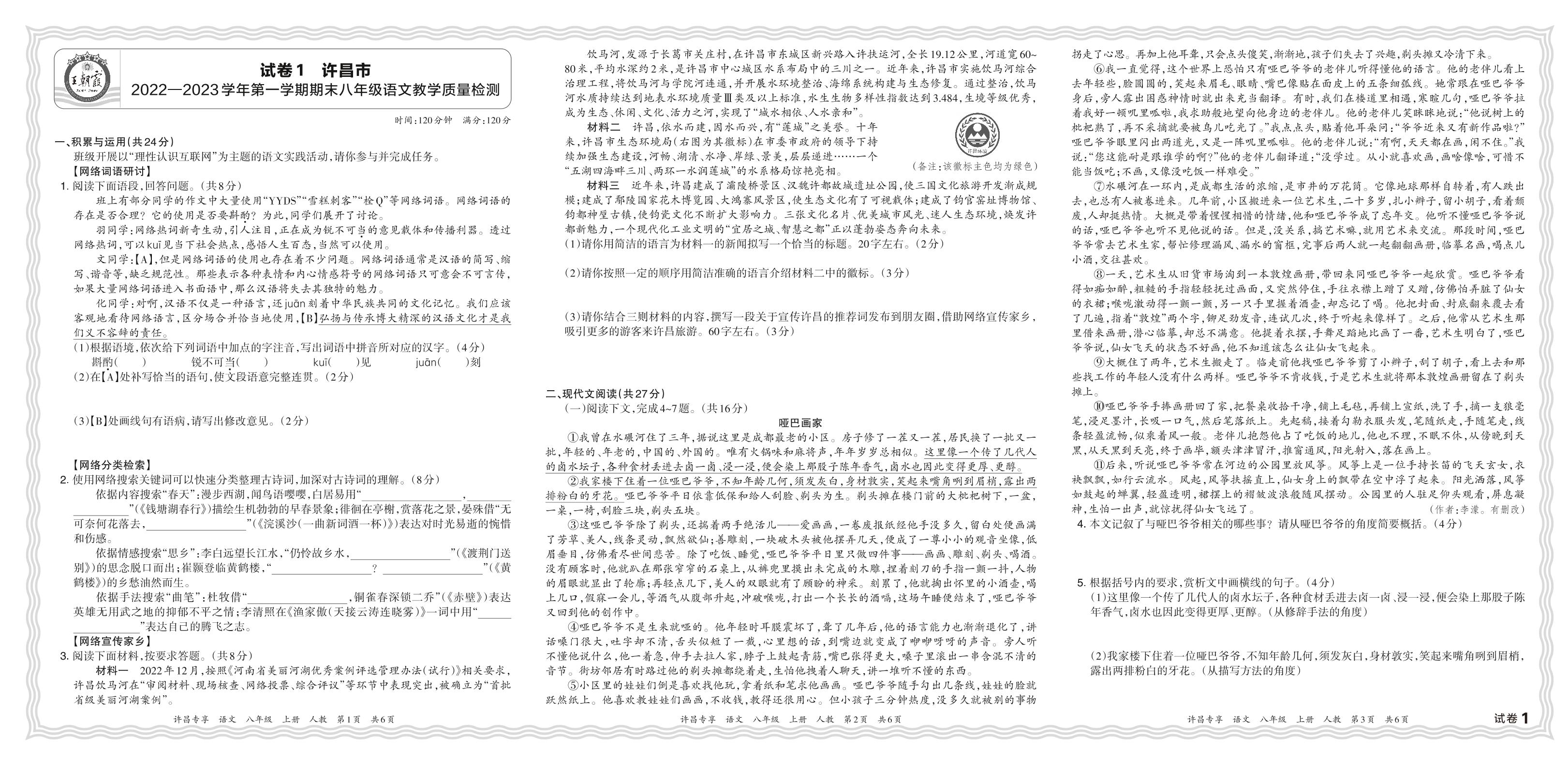 河南省许昌市2022—2023学年第一学期期末八年级语文教学质量检测(人教版)【1】