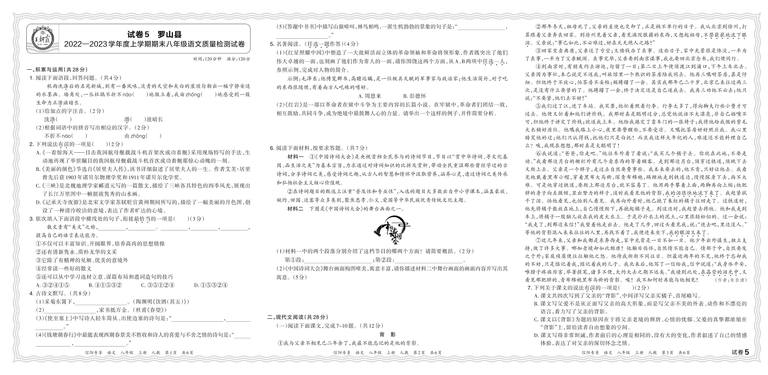 河南省信阳市罗山县2022—2023学年度上学期期末八年级语文质量检测试卷(人教版)【5】