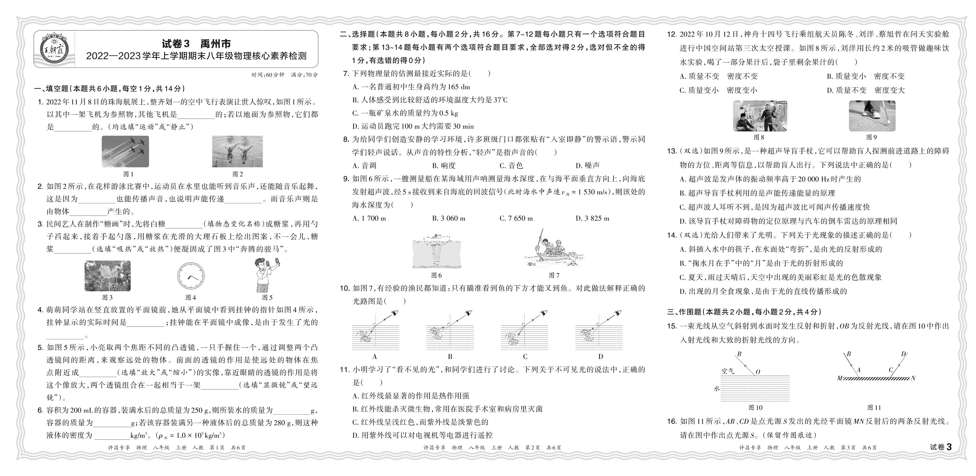 河南省许昌市禹州市2022—2023学年上学期期未八年级物理核心素养检测(人教版)【3】