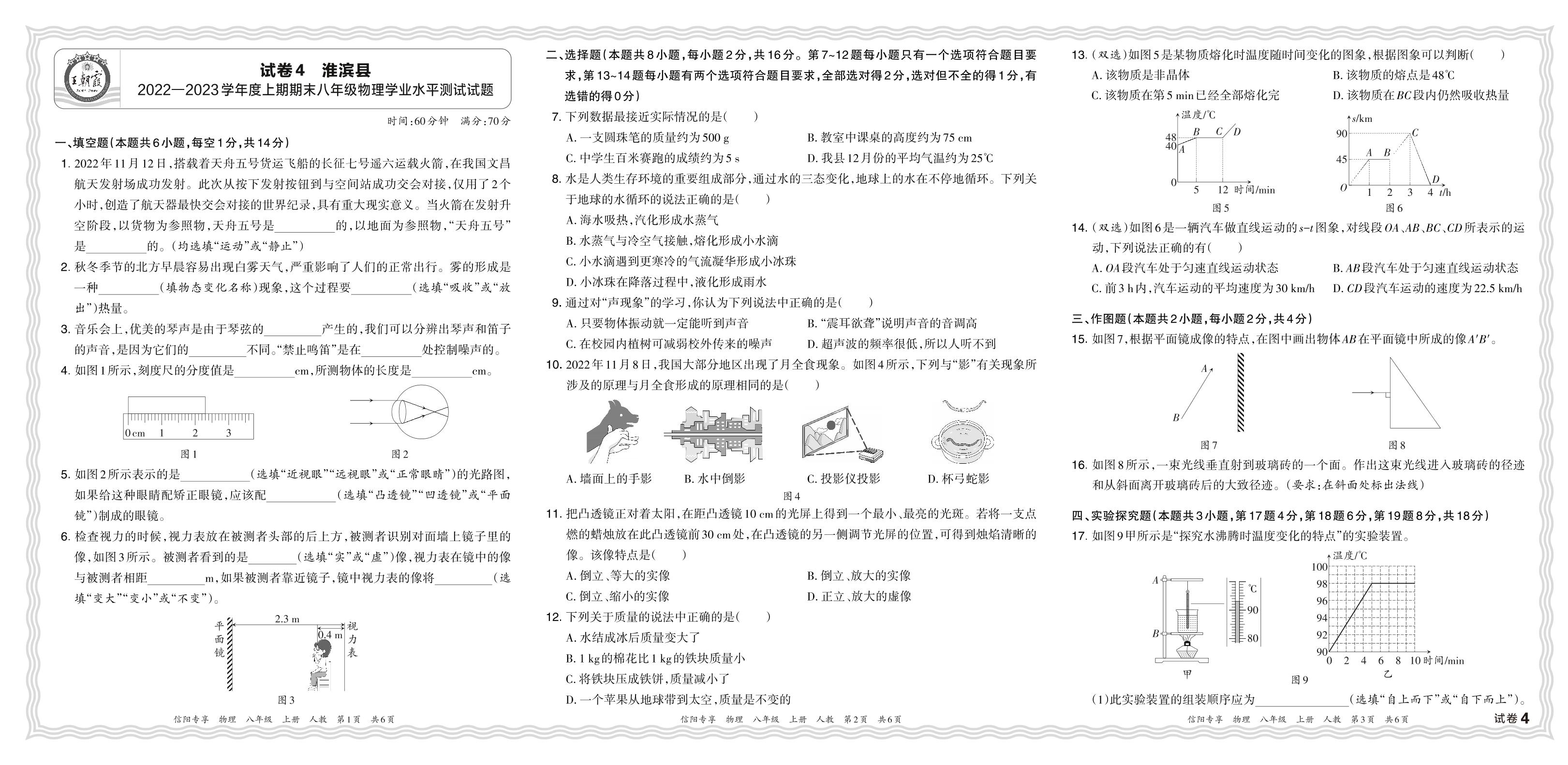 河南省信阳市淮滨县2022—2023学年度上期期末八年级物理学业水平测试试题(人教版)【4】