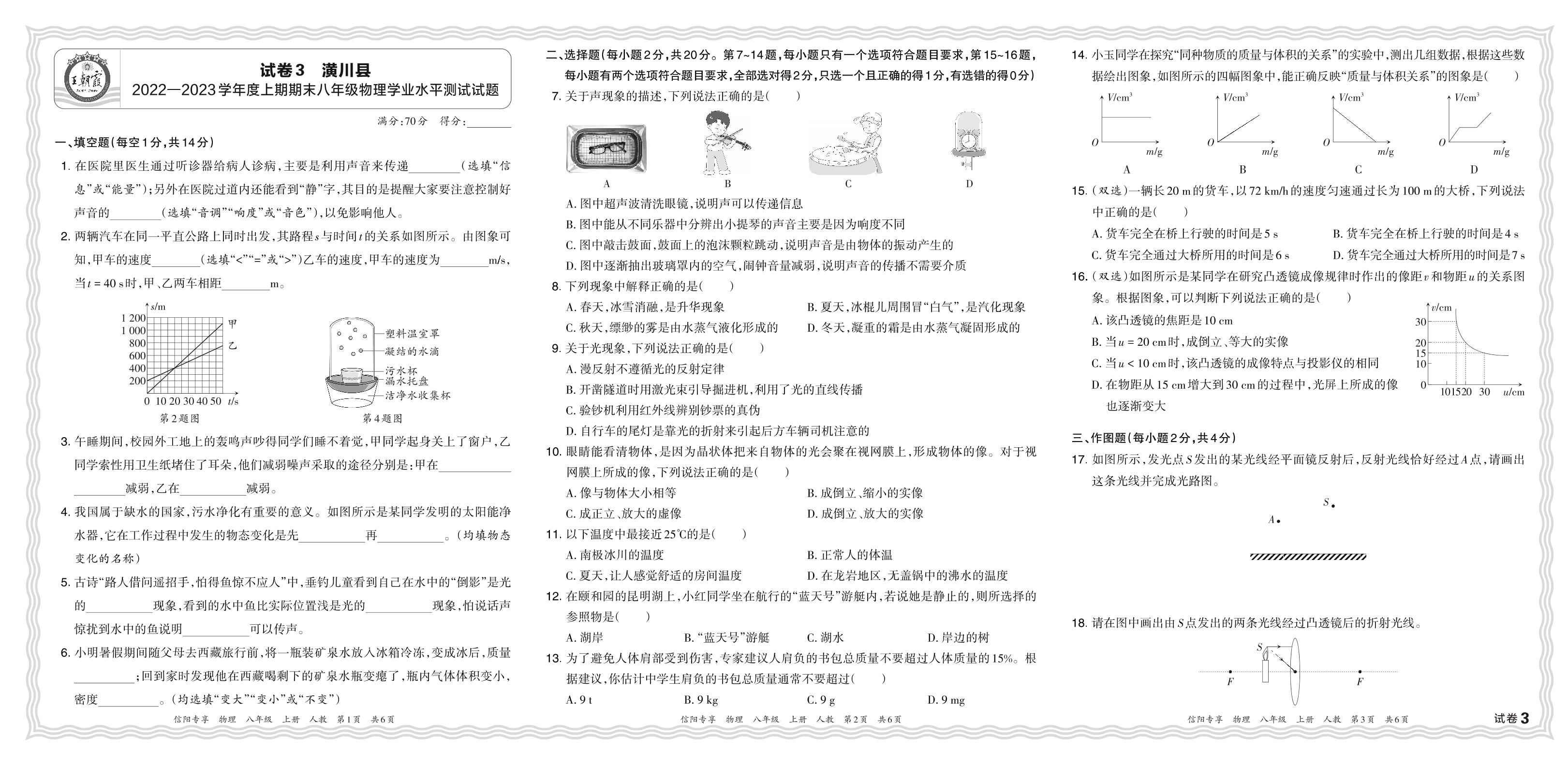 河南省信阳市潢川县2022—2023学年度上期期末八年级物理学业水平测试试题(人教版)【3】