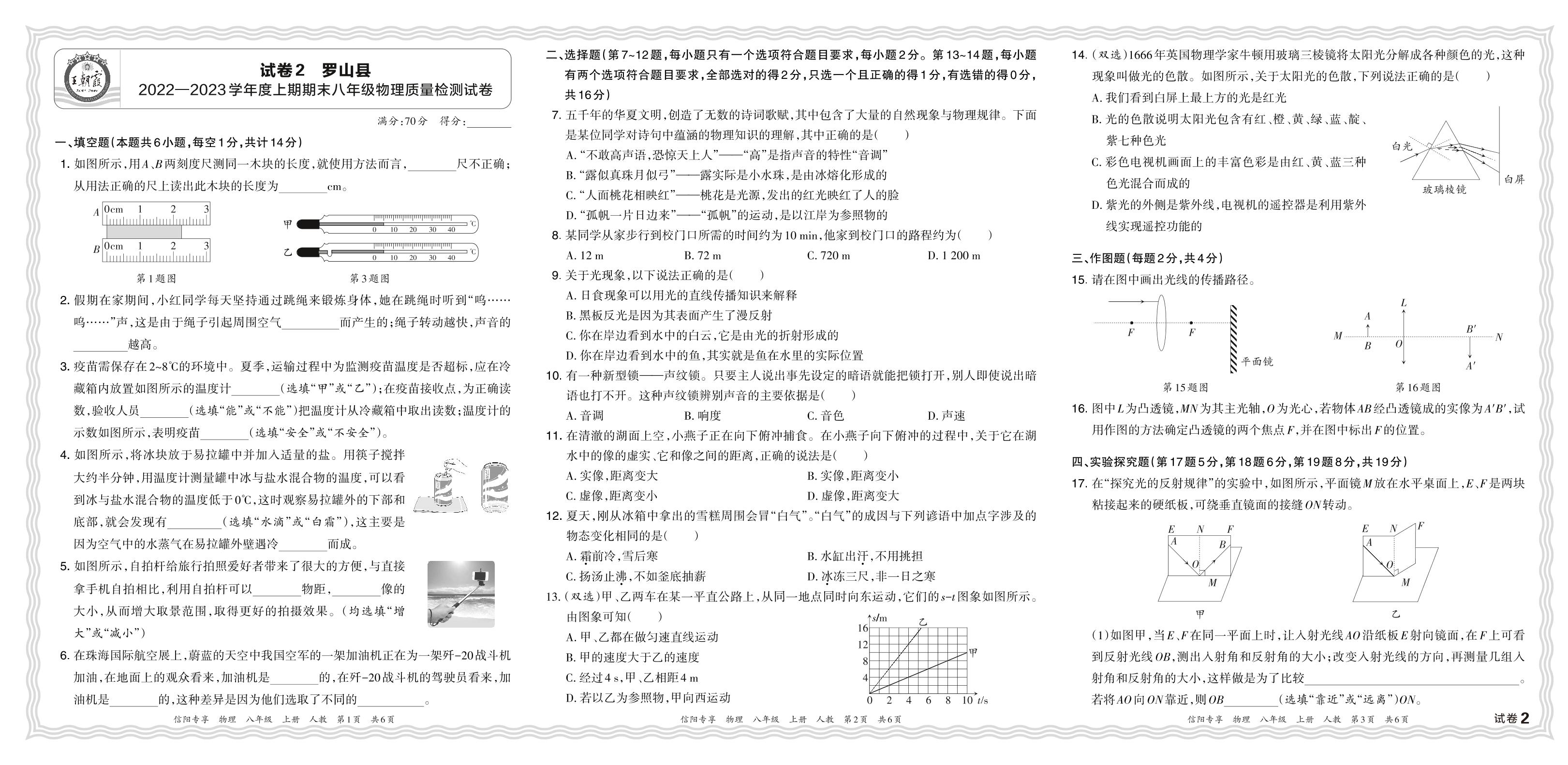 河南省信阳市罗山县2022—2023学年度上期期末八年级物理质量检测试卷(人教版)【2】