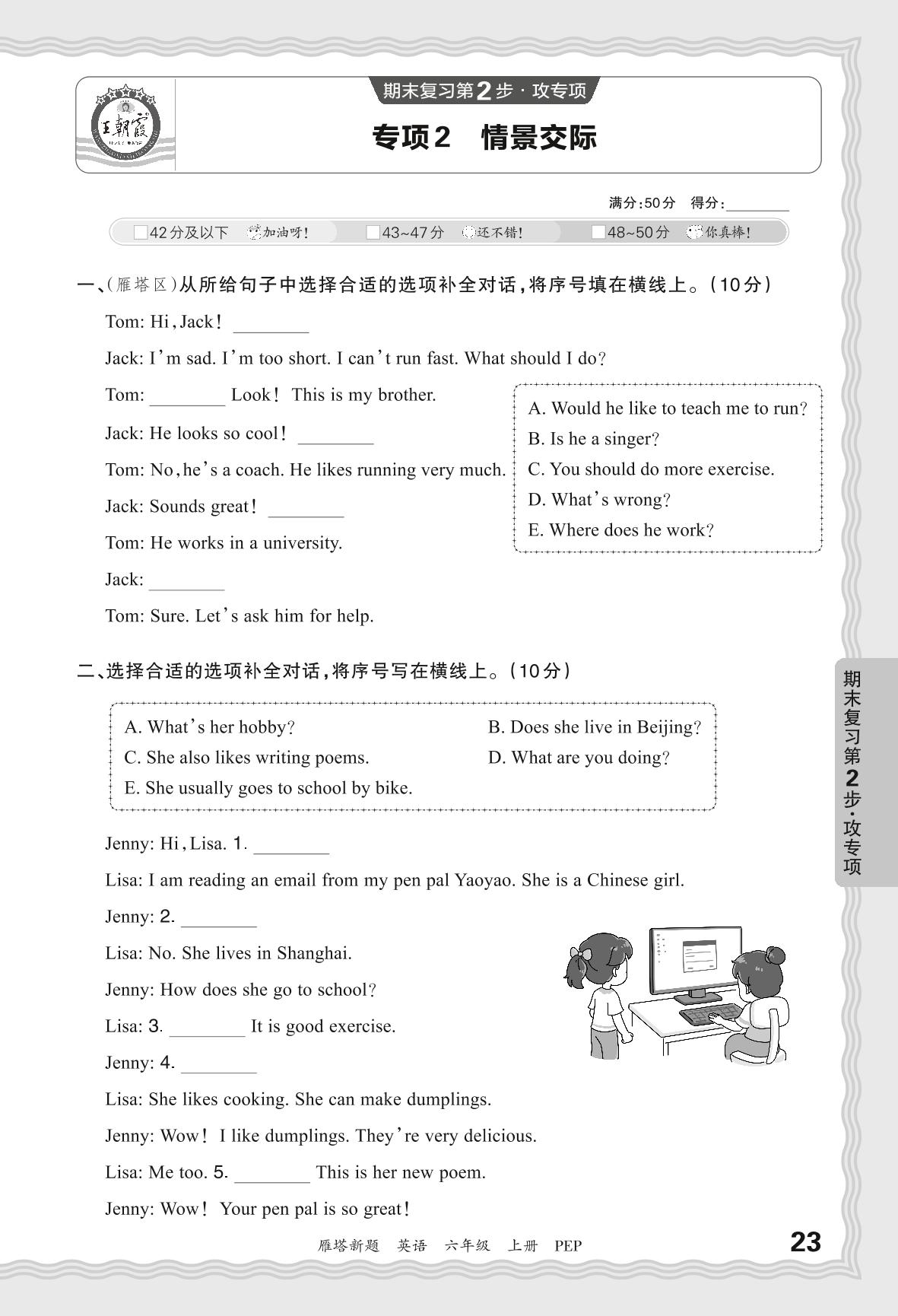 2023秋上册六年级英语人教PEP版 期末专项·情景交际_R231128145841083【2】