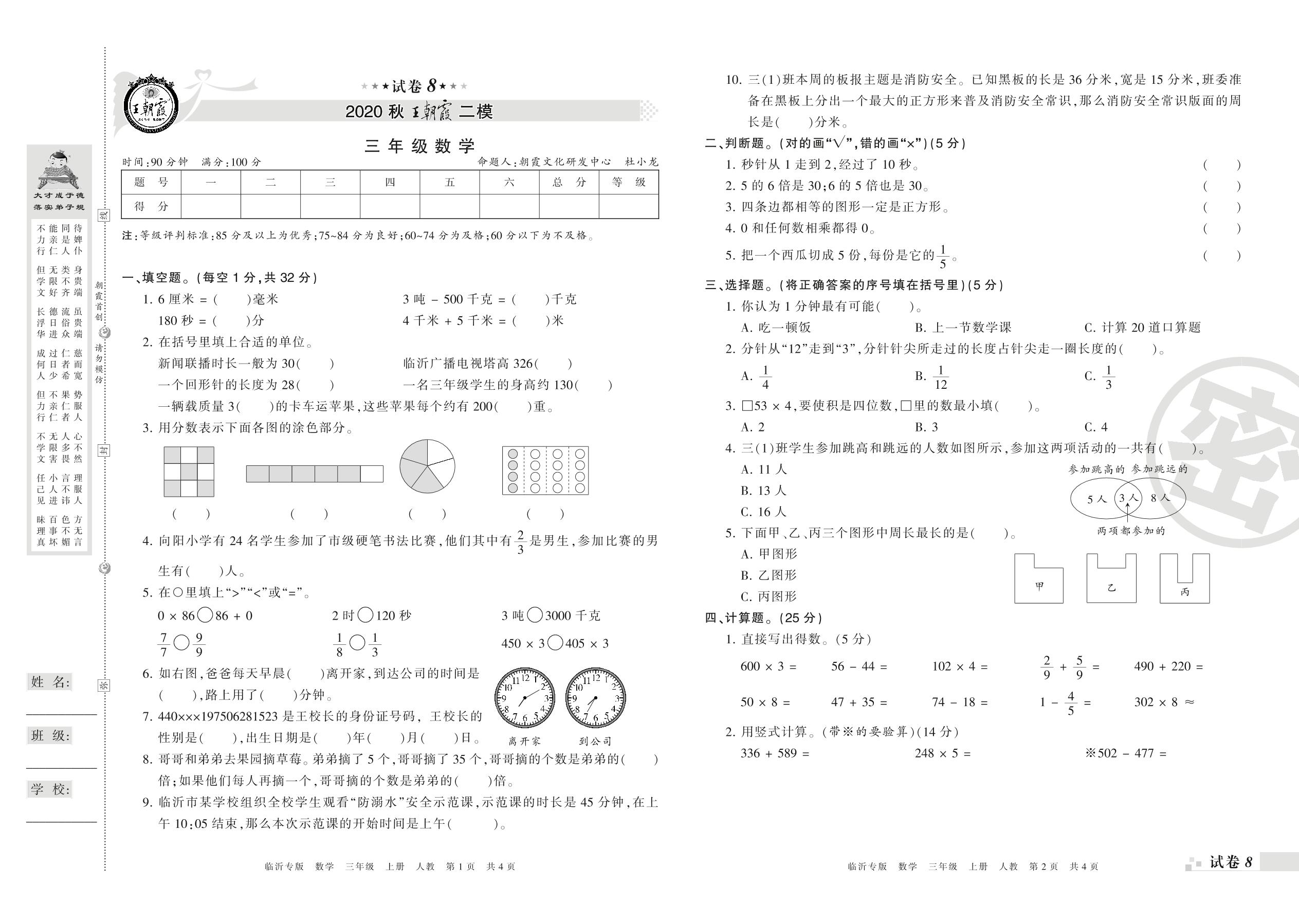 王朝霞期末模拟卷三年级上册数学(人教版)_R21080491106【8】
