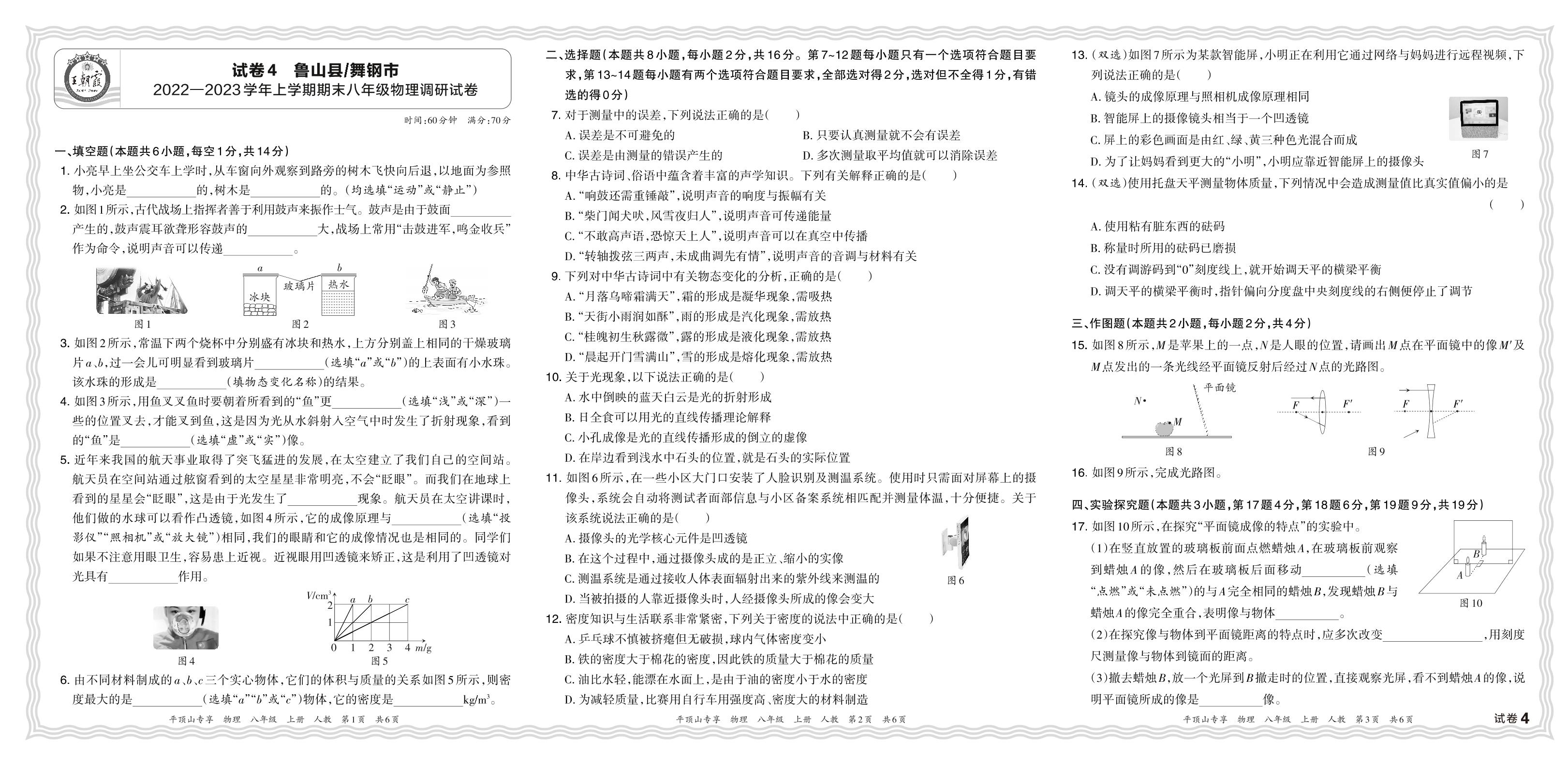 河南省平顶山市鲁山县、舞钢市2022—2023学年上学期期末八年级物理调研试卷(人教版)【4】