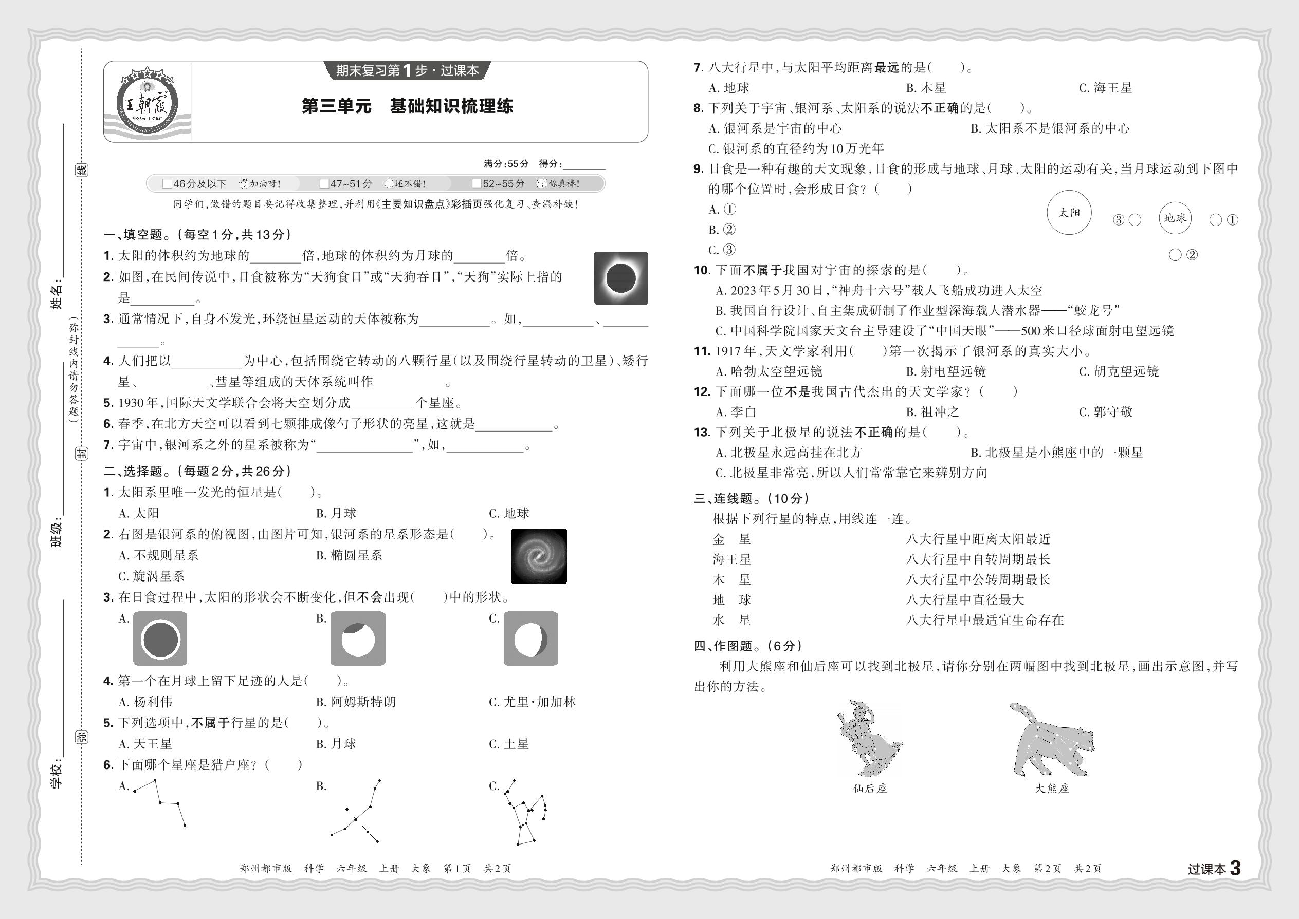 2023秋上册六年级科学大象版 期末过课本·第三单元 基础知识梳理练【3】