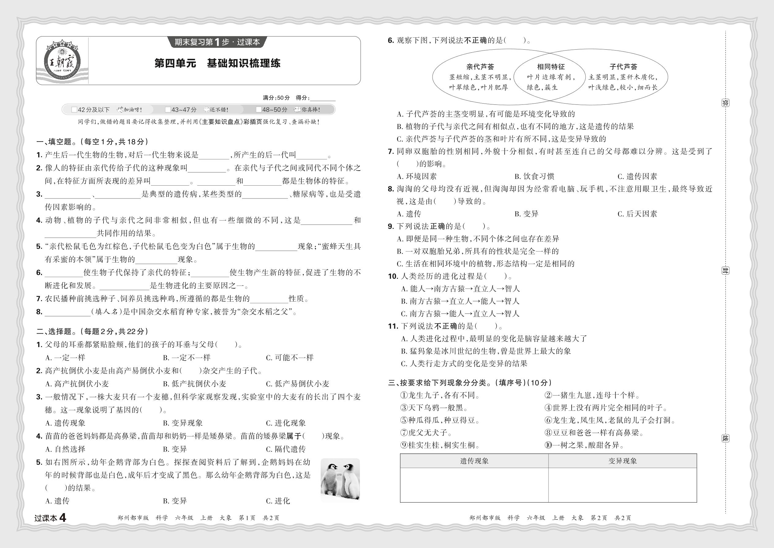 2023秋上册六年级科学大象版 期末过课本·第四单元 基础知识梳理练【4】