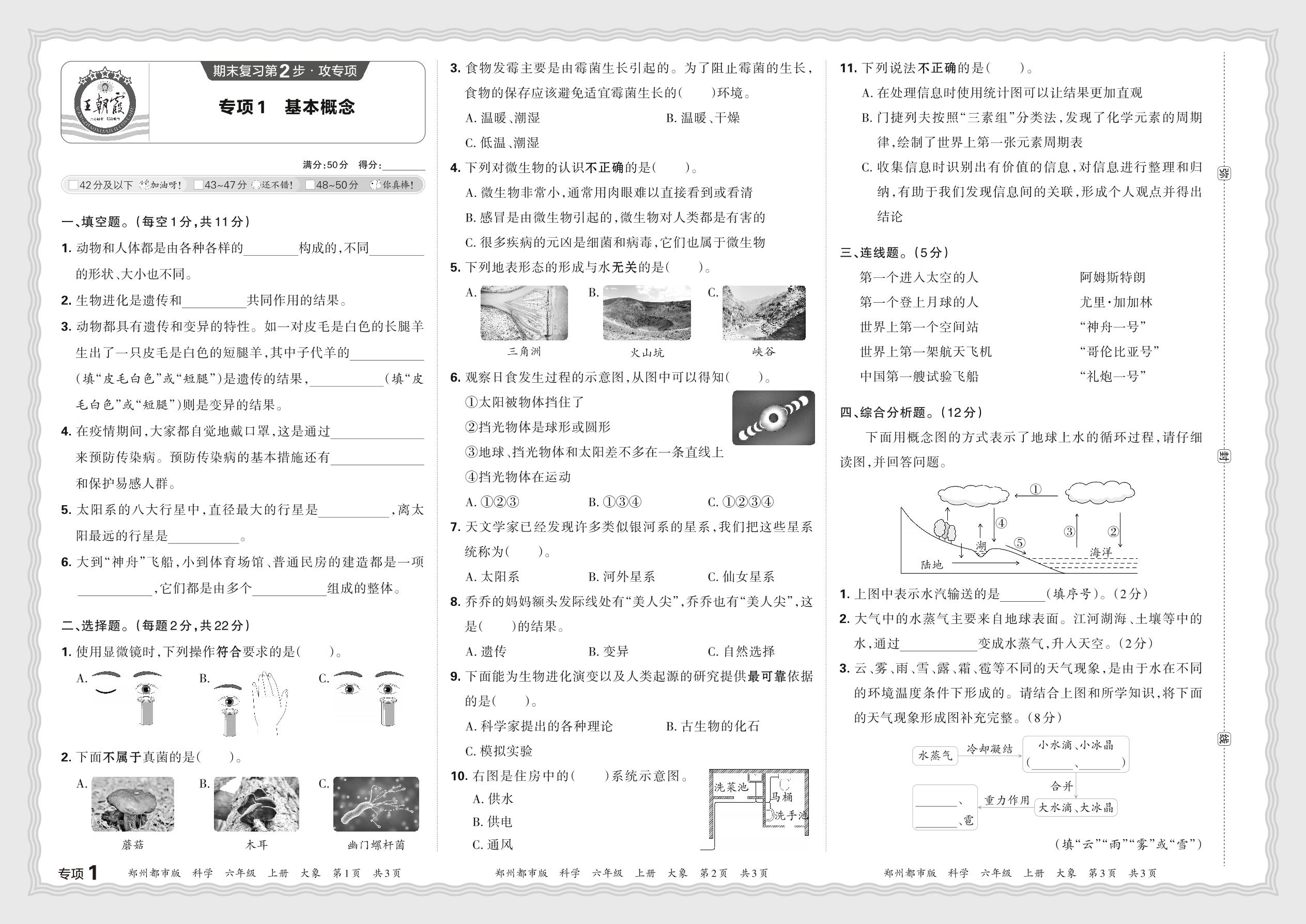 2023秋上册六年级科学大象版 期末专项卷·基本概念【1】