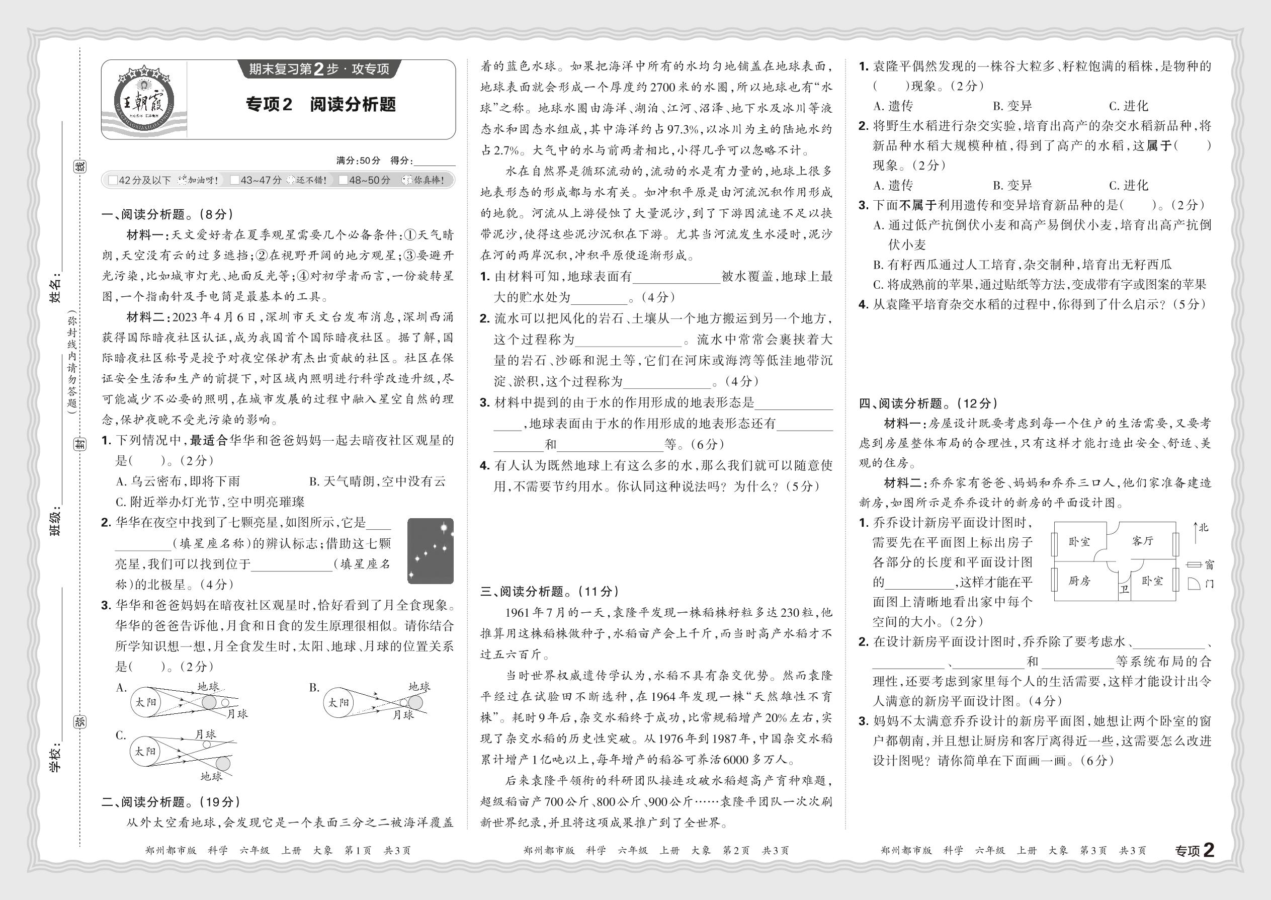 2023秋上册六年级科学大象版 期末专项卷·阅读分析题【2】