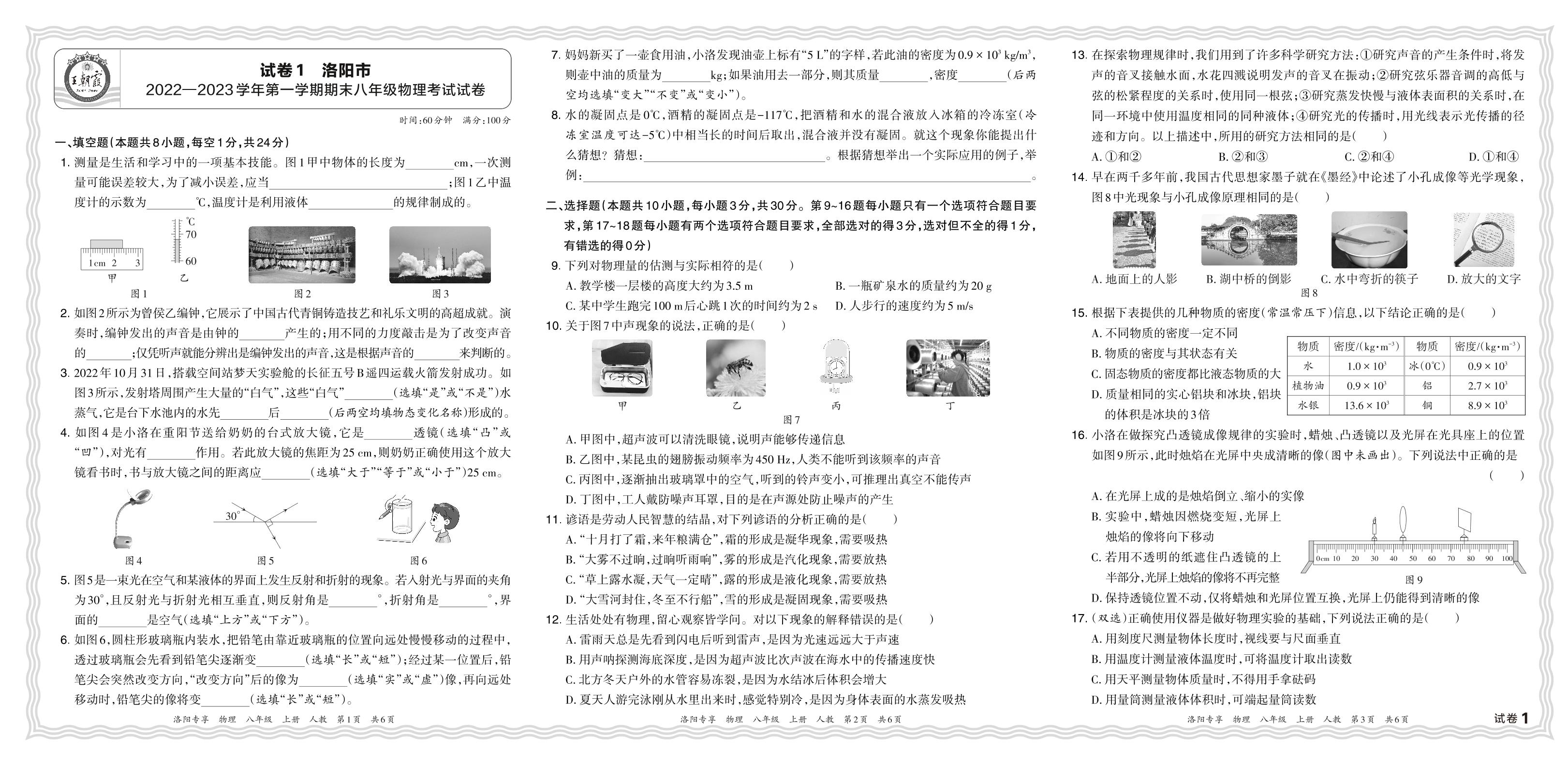 河南省洛阳市2022—2023学年第一学期期末八年级物理考试试卷(人教版)【1】