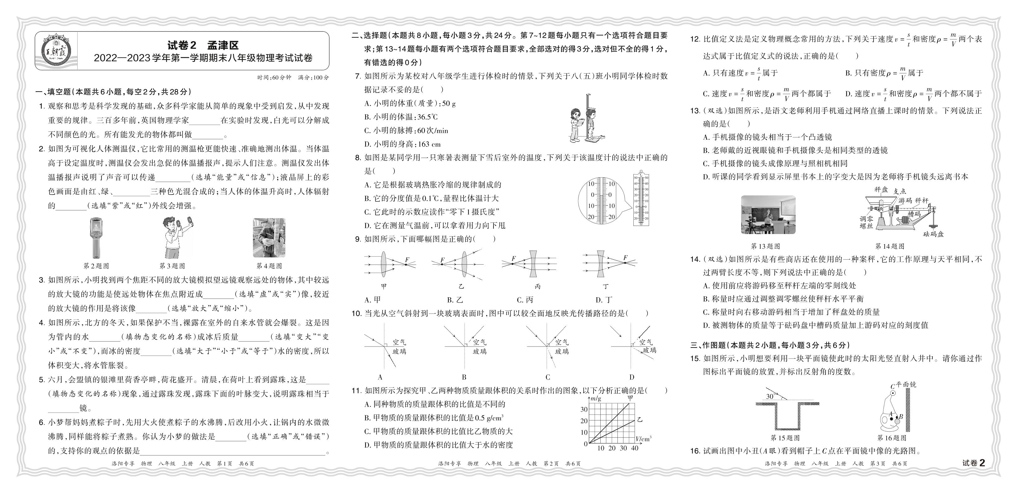 河南省洛阳市孟津区2022—2023学年第一学期期末八年级物理考试试卷(人教版)【2】