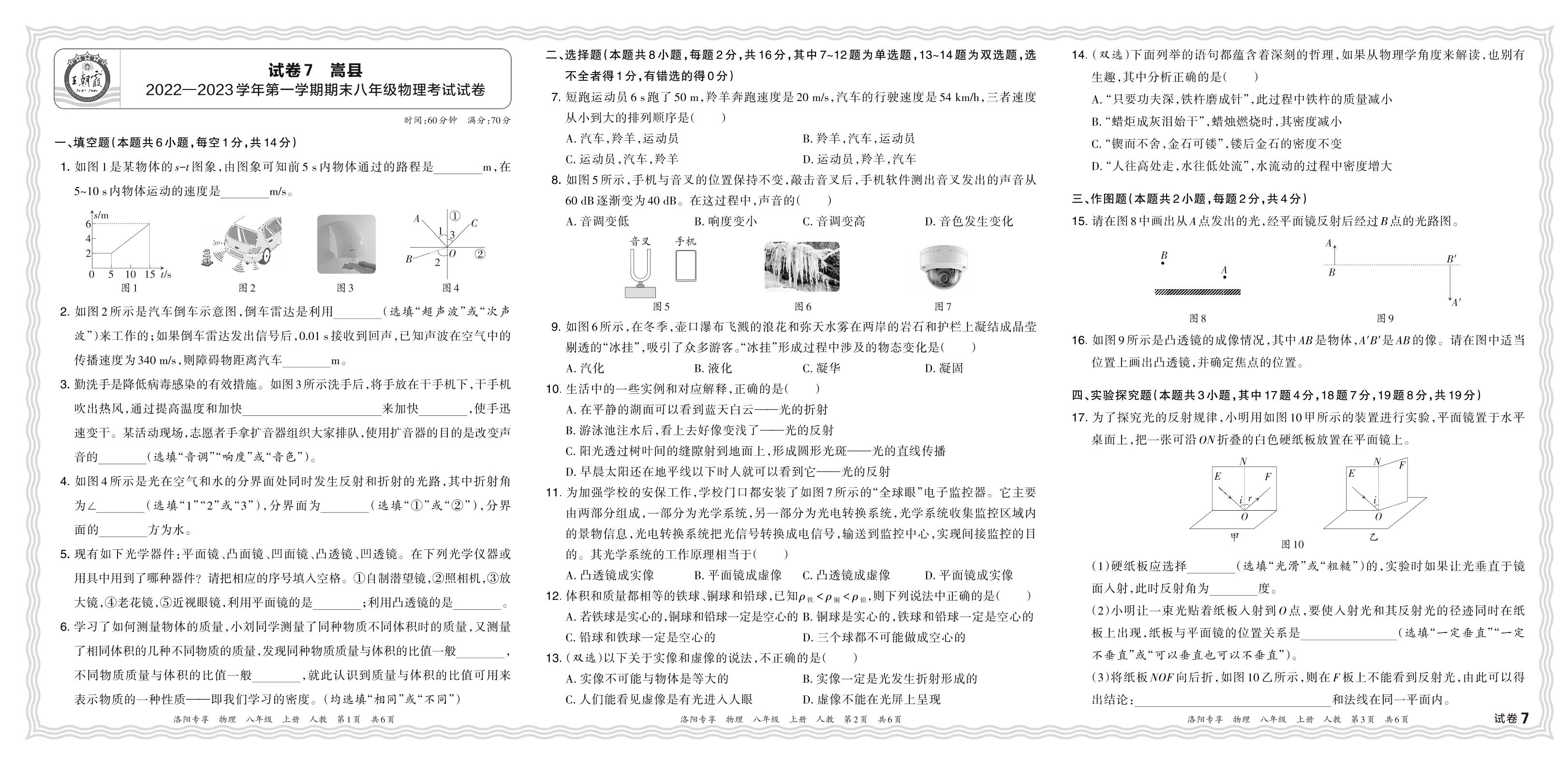 河南省洛阳市嵩县2022—2023学年第一学期期末八年级物理考试试卷(人教版)【7】
