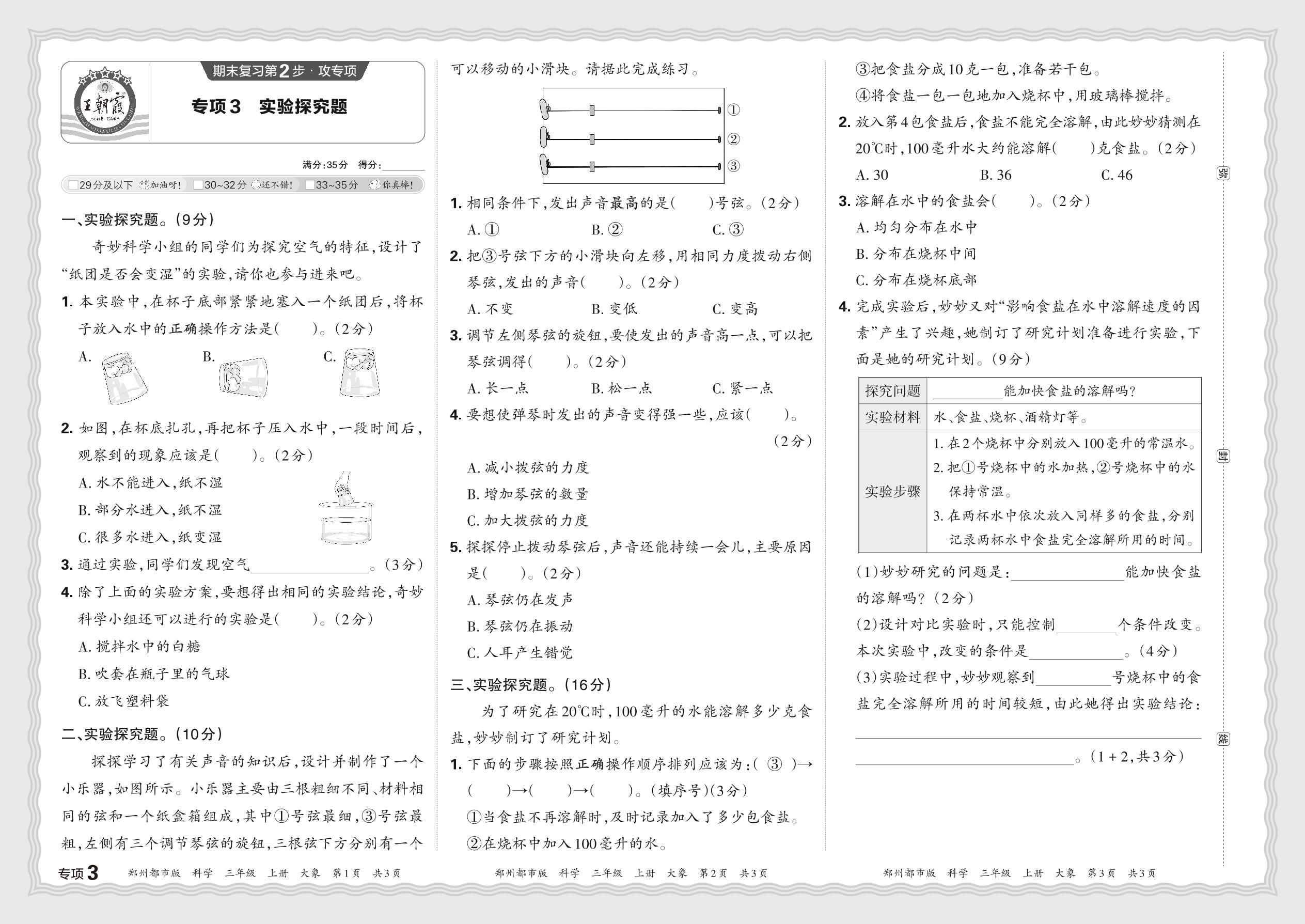2023秋上册三年级科学大象版 期末专项卷·实验探究题【3】