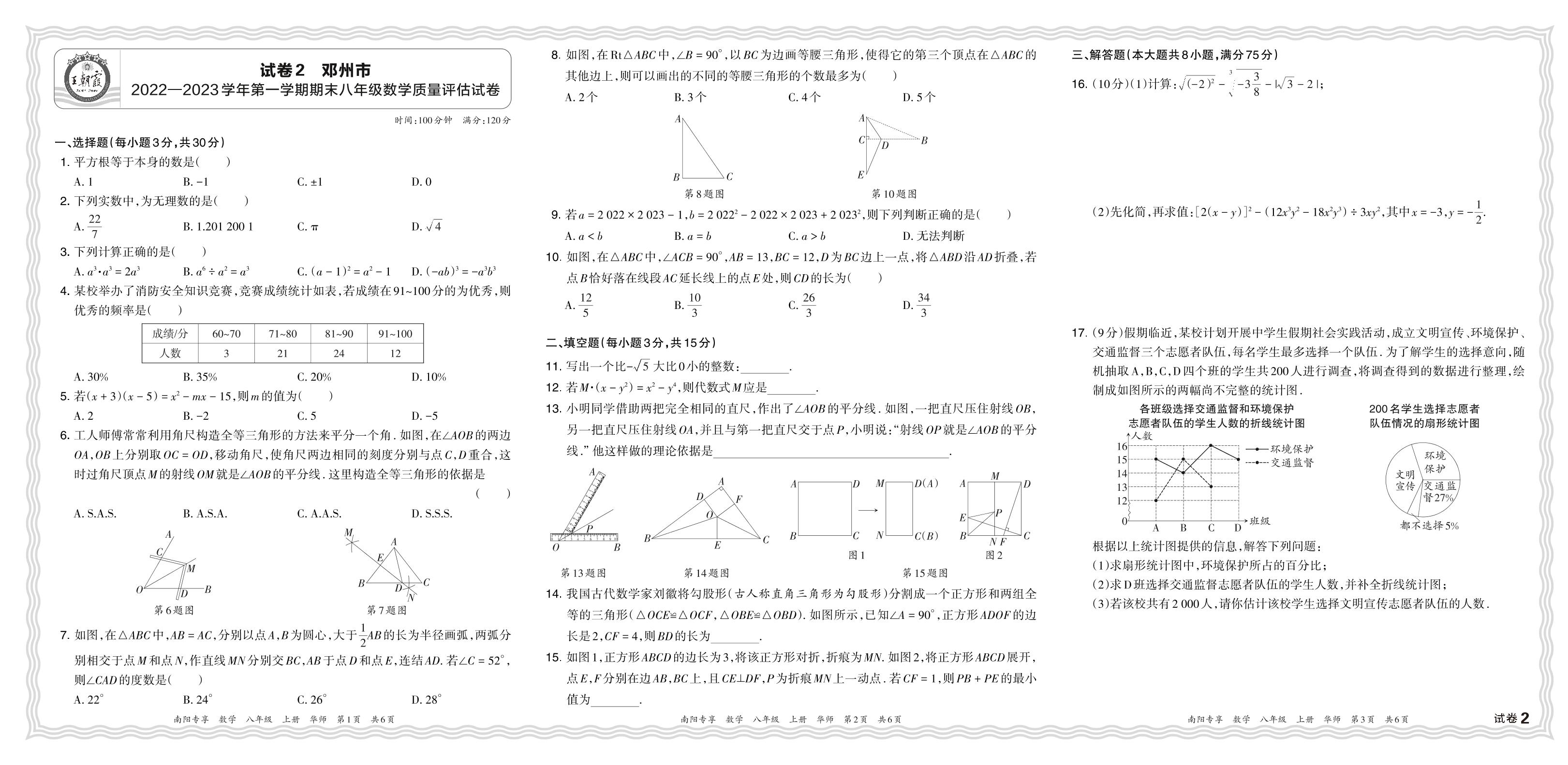 河南省南阳市邓州市2022—2023学年第一学期期末八年级数学质量评估试卷(华师版)【2】
