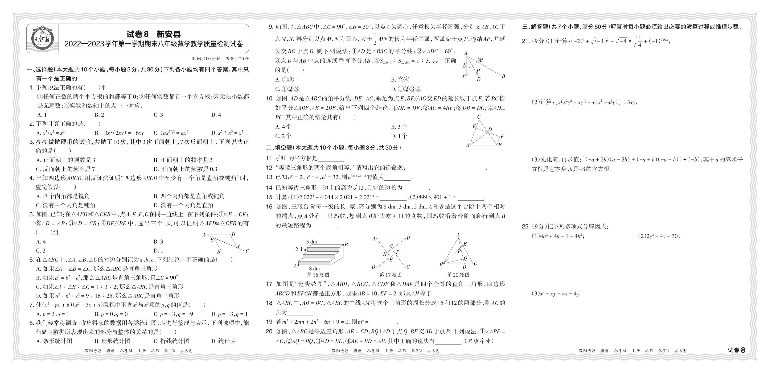 河南省洛阳市新安县2022—2023学年第一学期期末八年级数学教学质量检测试卷(华师版)【8】