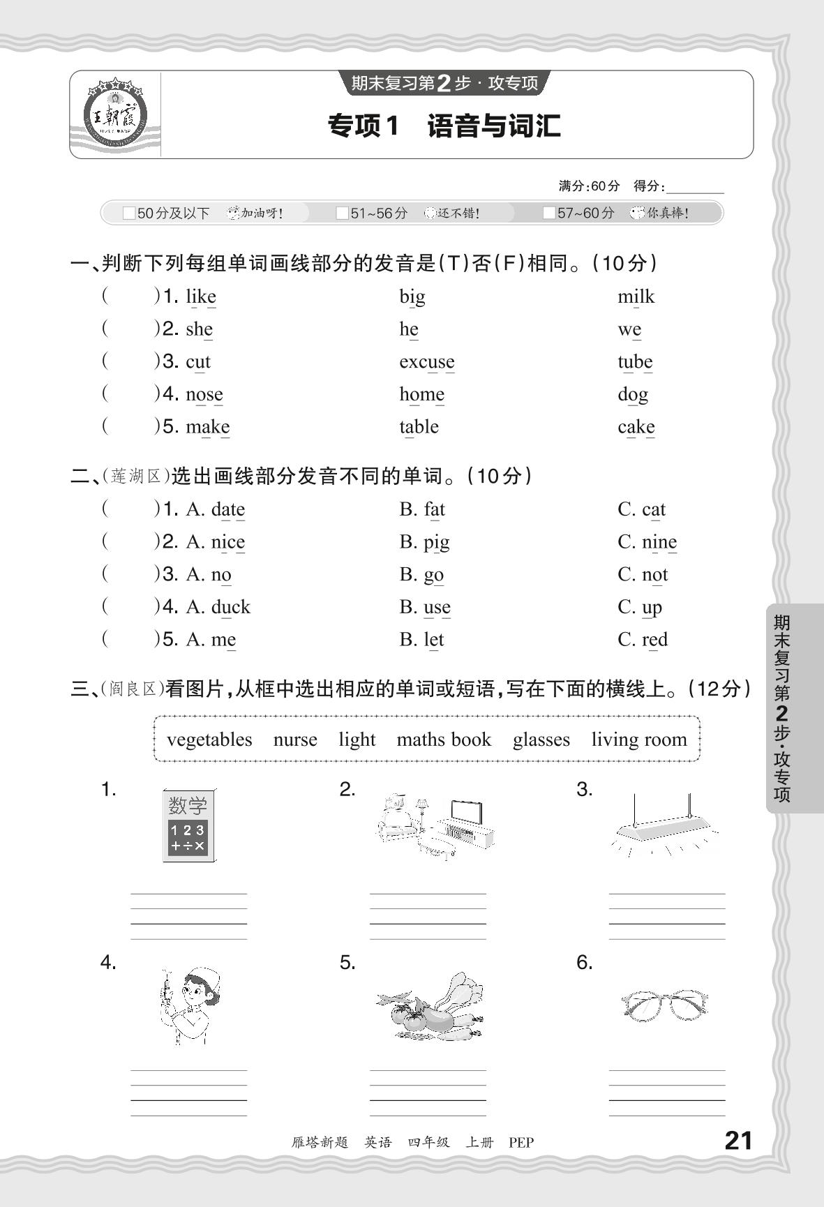 2023秋上册四年级英语人教PEP版 期末专项·语音与词汇_R231128150929369【1】