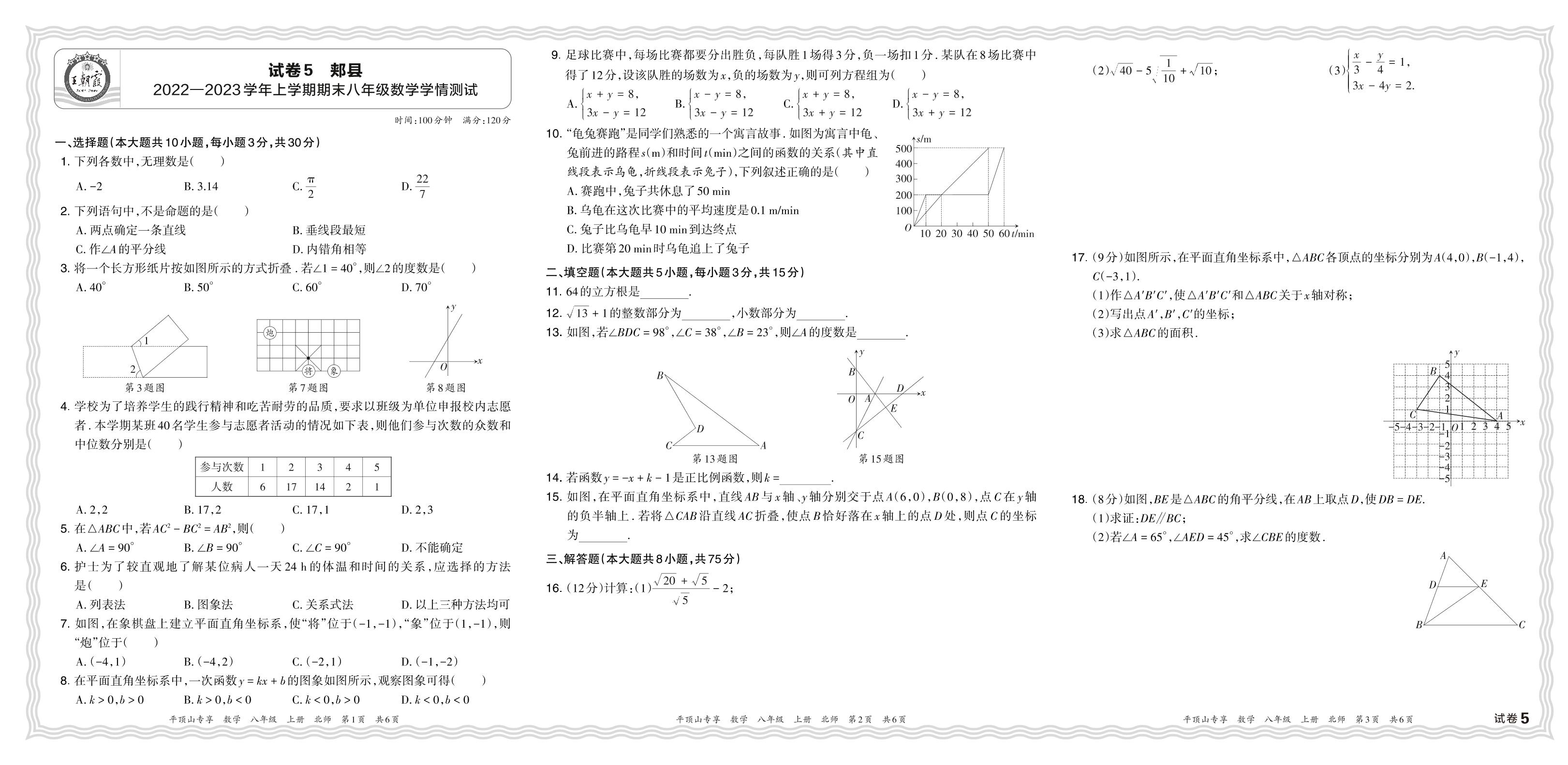 河南省平顶山市郏县2022—2023学年上学期期末八年级数学学情测试(北师版)【5】