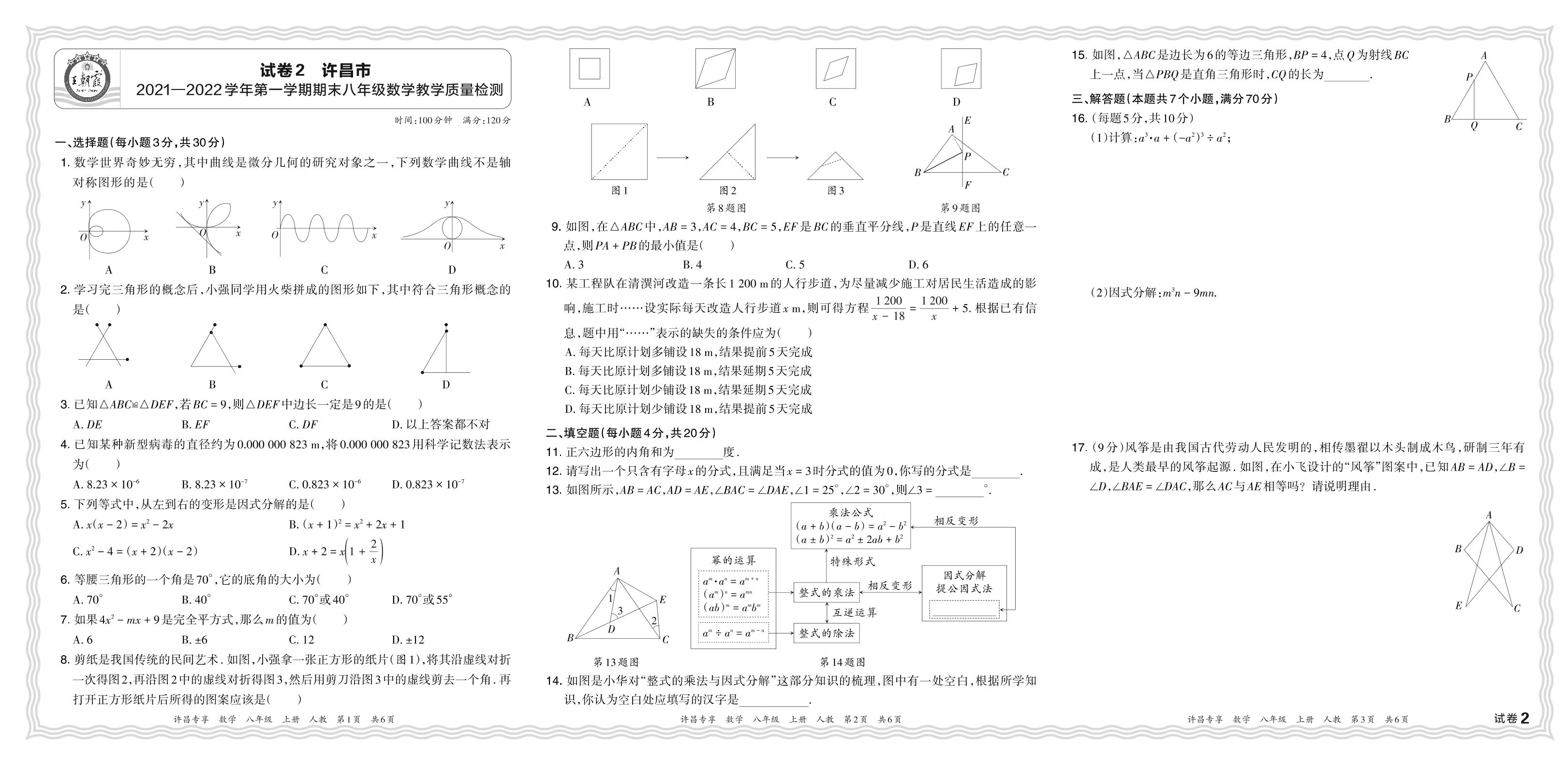 河南省许昌市2021—2022学年第一学期期末八年级数学教学质量检测(人教版)【2】