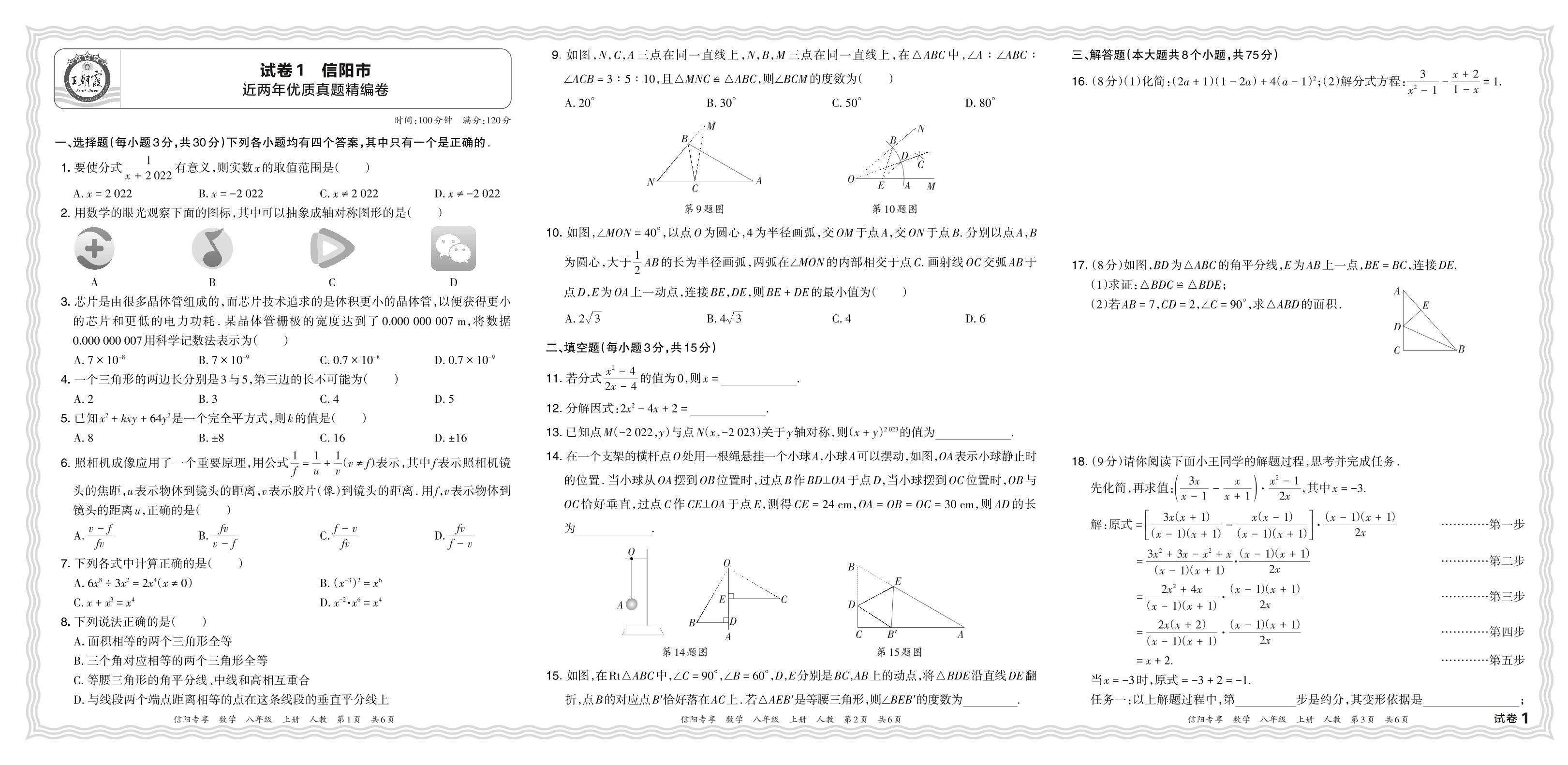 2023秋河南省信阳市近两年优质真题精编卷八年级上册期末数学(人教版)【1】