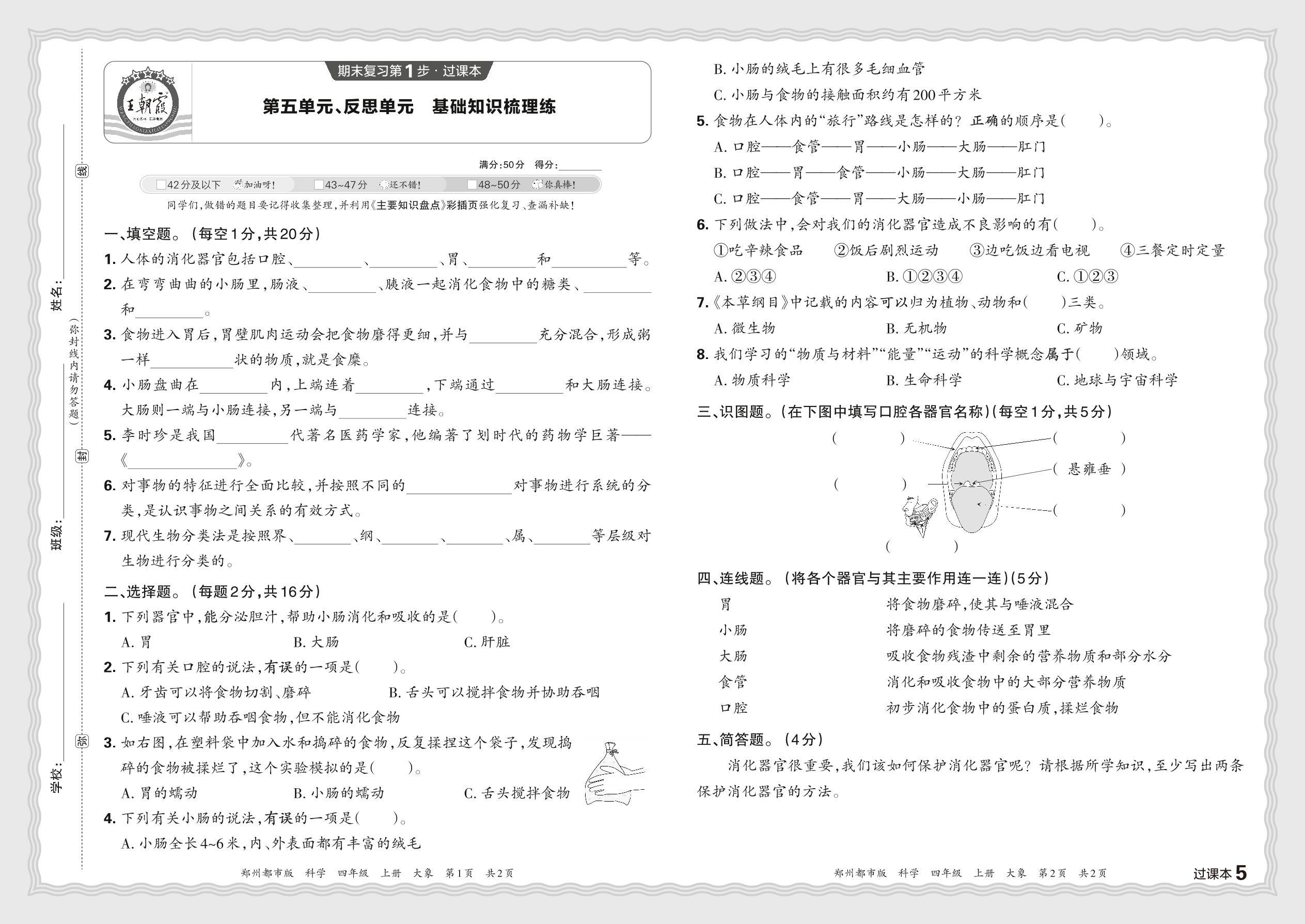 2023秋上册四年级科学大象版 期末过课本·第五单元、反思单元 基础知识梳理练【5】