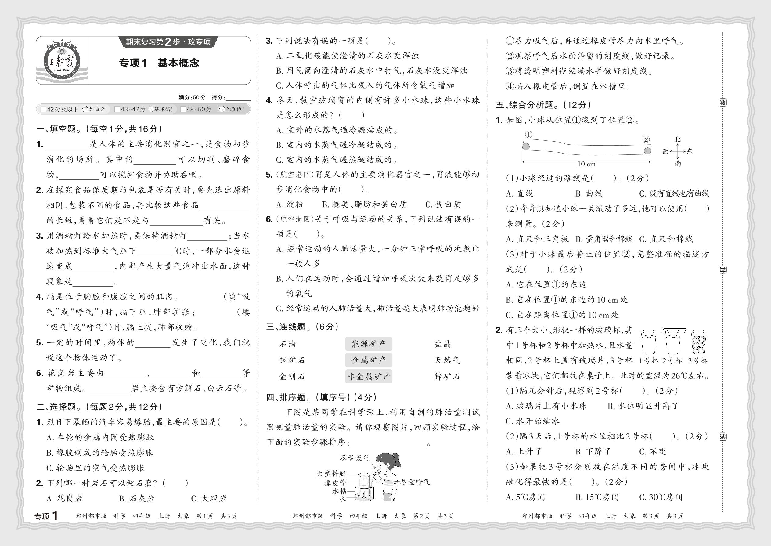 四年级科学大象版上册专项卷