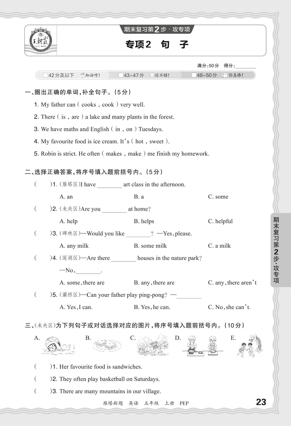 2023秋上册五年级英语人教PEP版 期末专项·句子【2】