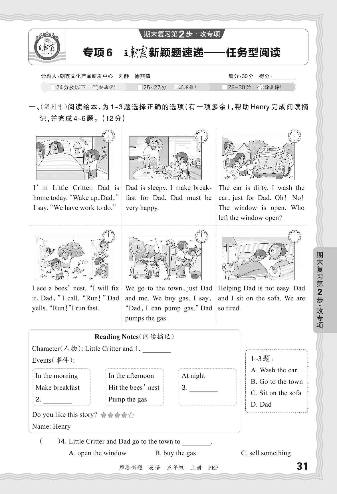 2023秋上册五年级英语人教PEP版 期末专项·王朝霞新颖题速递——任务型阅读_R231128151954731【6】