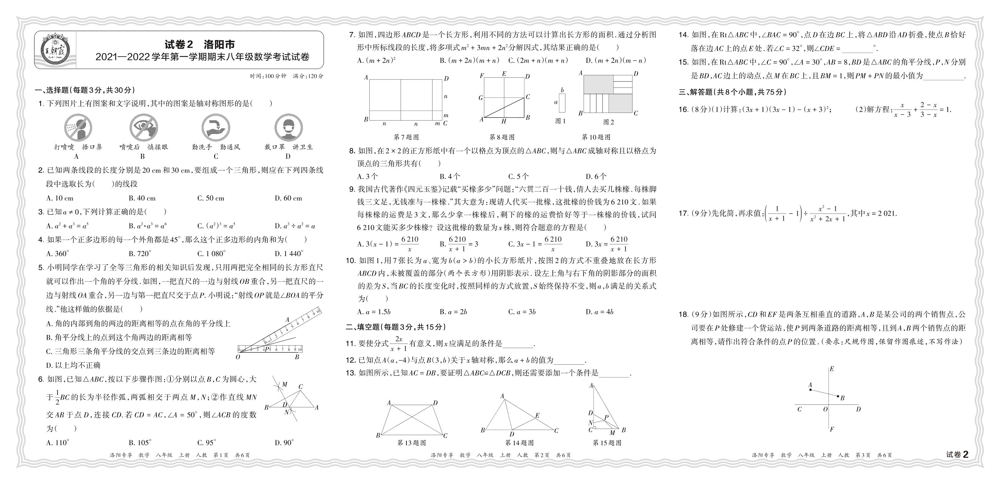 河南省洛阳市2021—2022学年第一学期期末八年级数学考试试卷(人教版)【2】