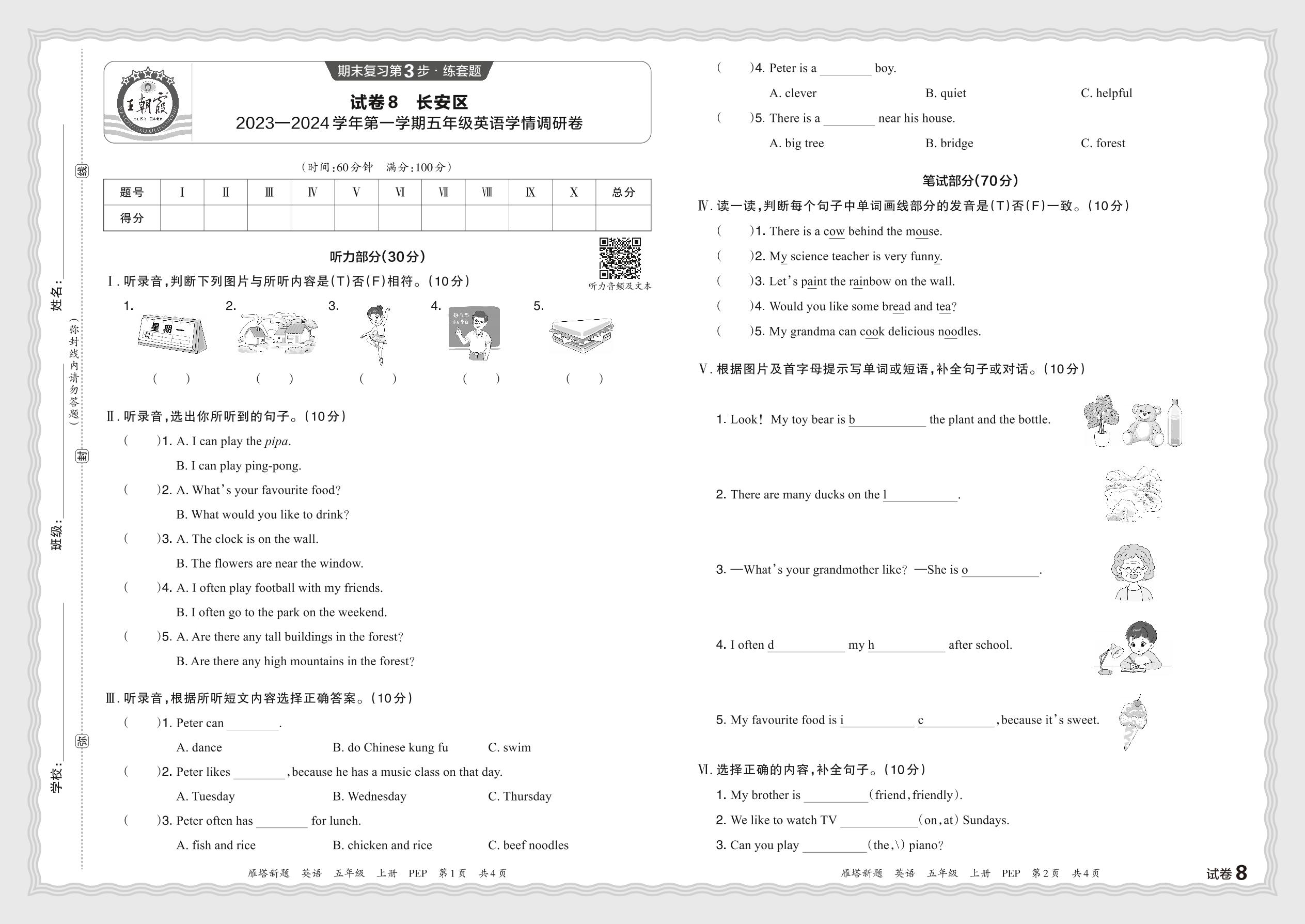 陕西省西安市长安区2023—2024学年第一学期五年级英语学情调研卷(PEP版)【8】