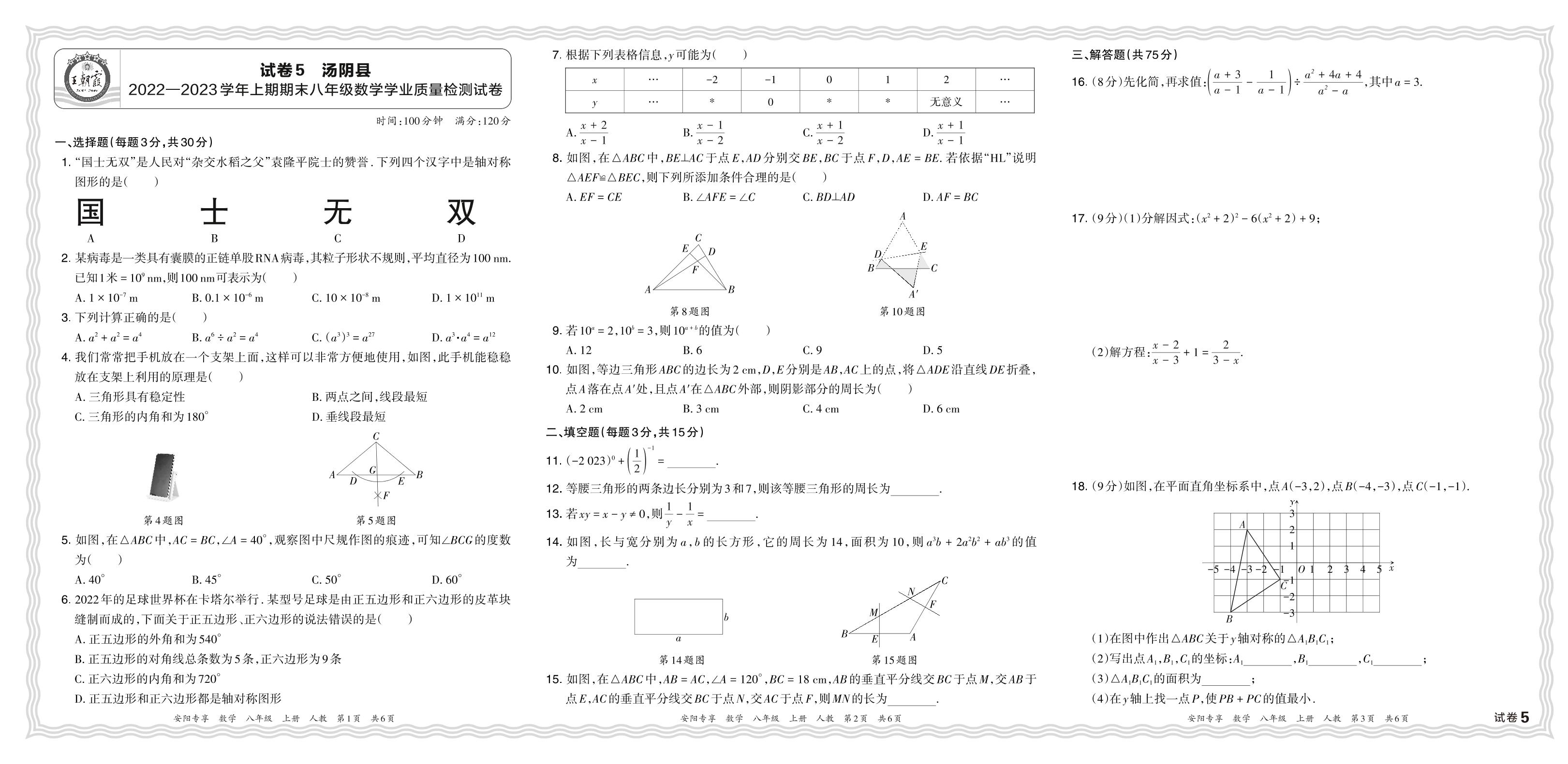 河南省安阳市汤阴县2022—2023学年上期期末八年级数学学业质量检测试卷(人教版)【5】
