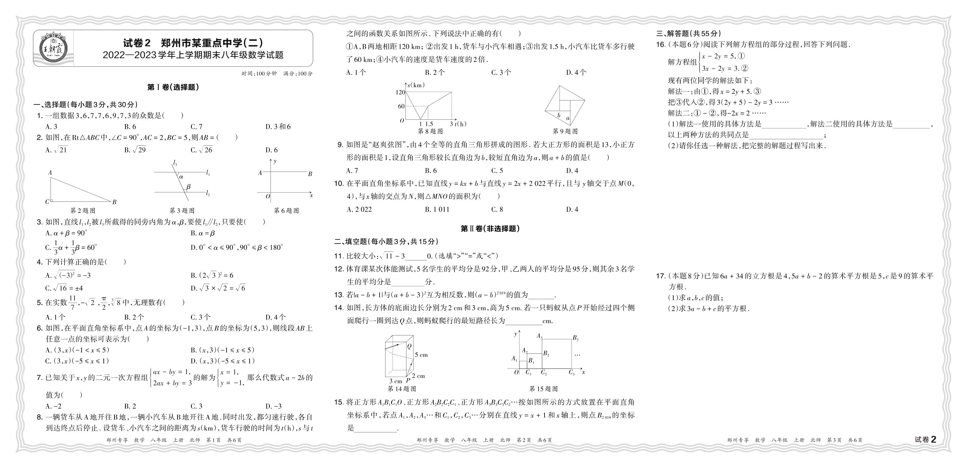 河南省郑州市某重点中学(二)2022—2023学年上学期期末八年级数学试题(北师版)【2】