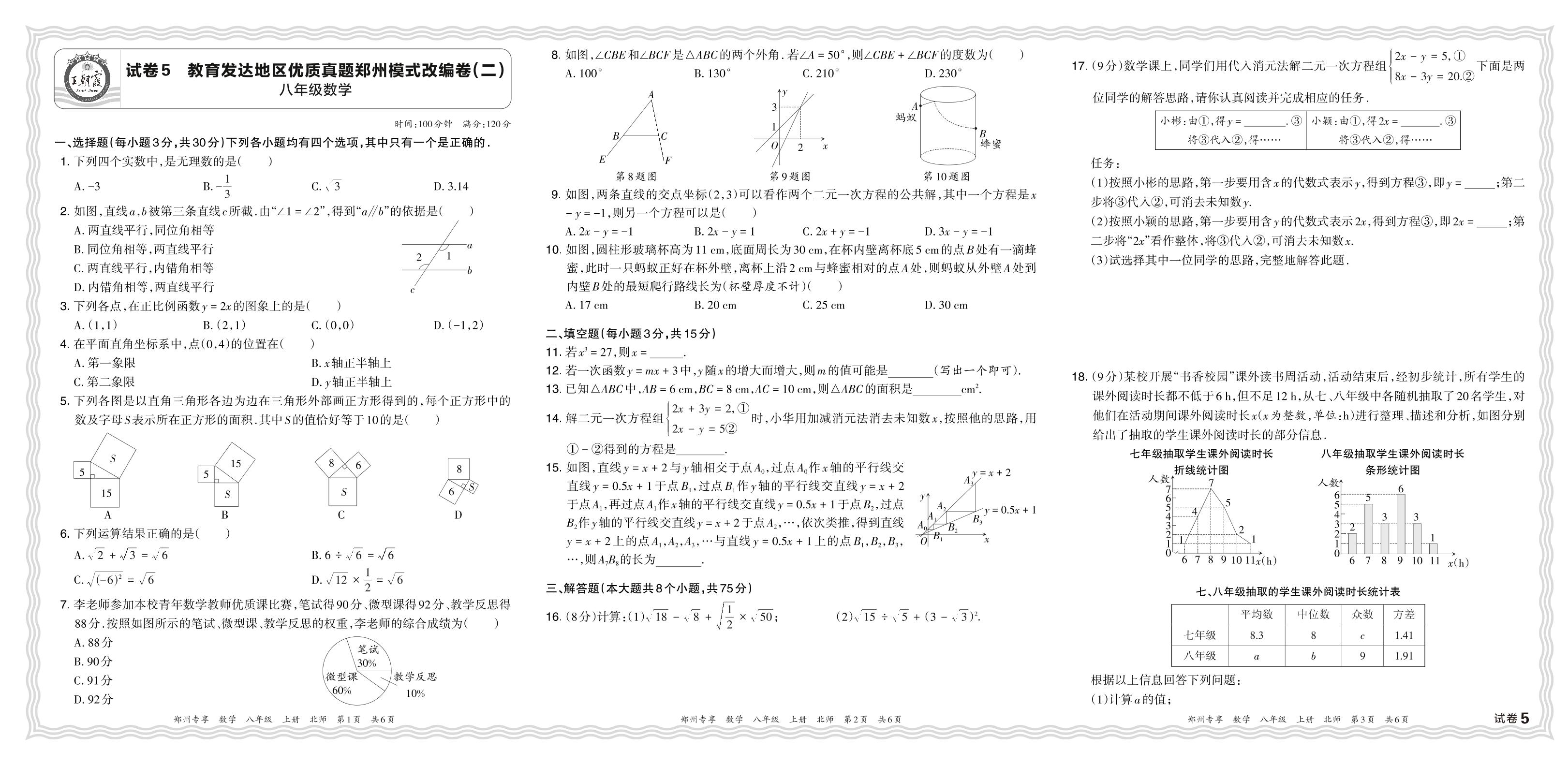 2023秋教育发达地区优质真题河南郑州模式改编卷(二)八年级上册期末数学(北师版)【5】