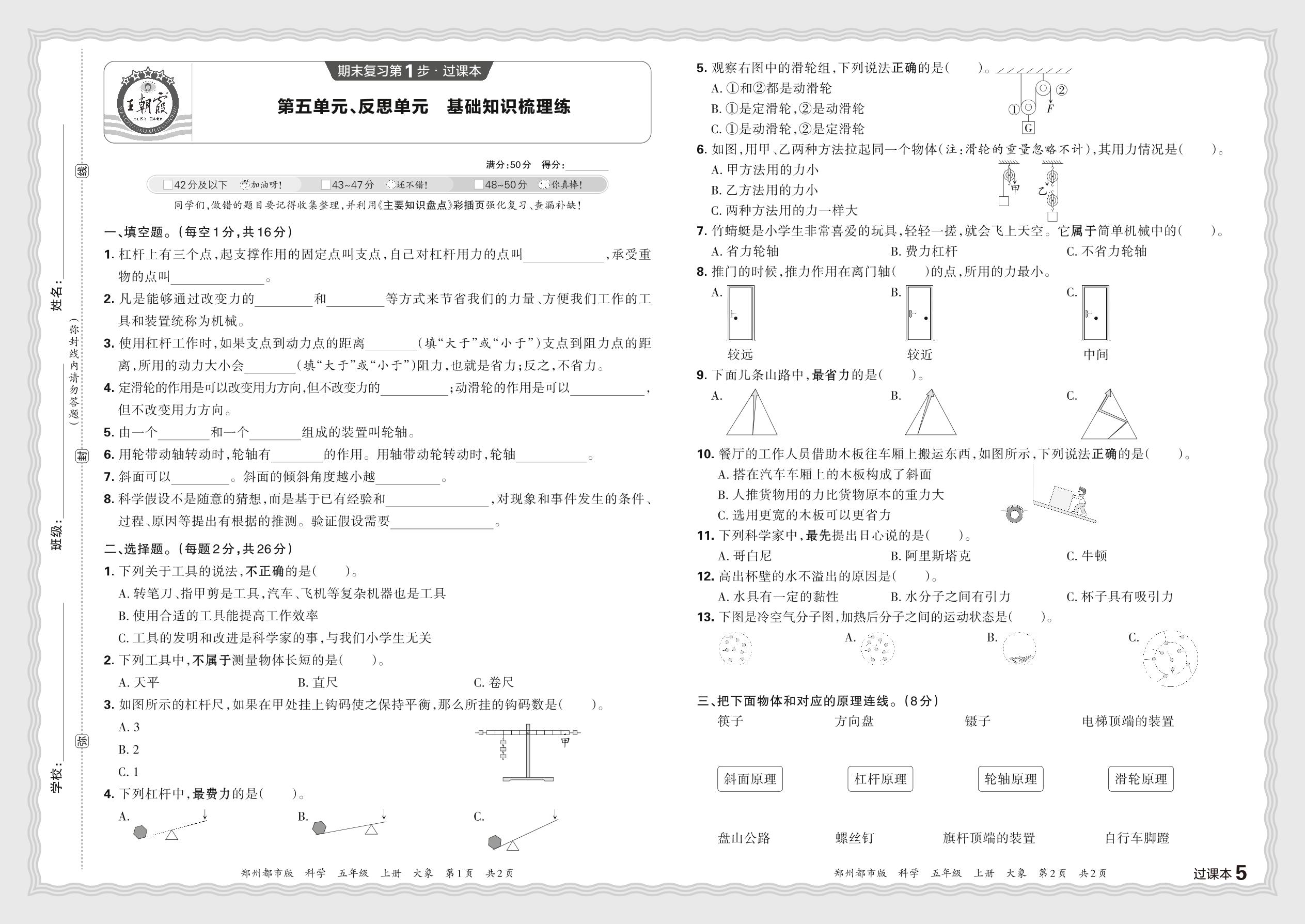 2023秋上册五年级科学大象版 期末过课本·第五单元、反思单元 基础知识梳理练【5】