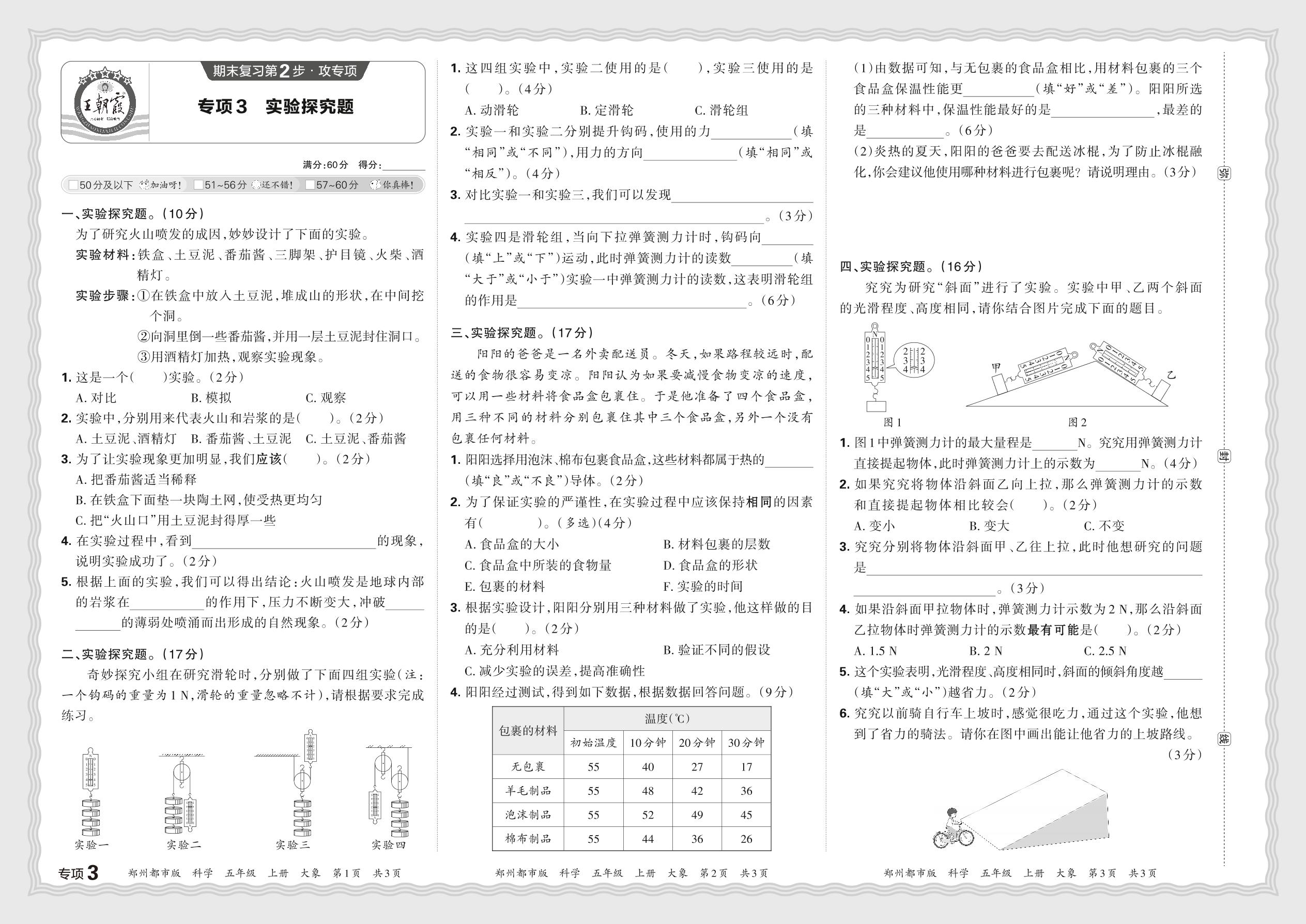 2023秋上册五年级科学大象版 期末专项卷·实验探究题【3】