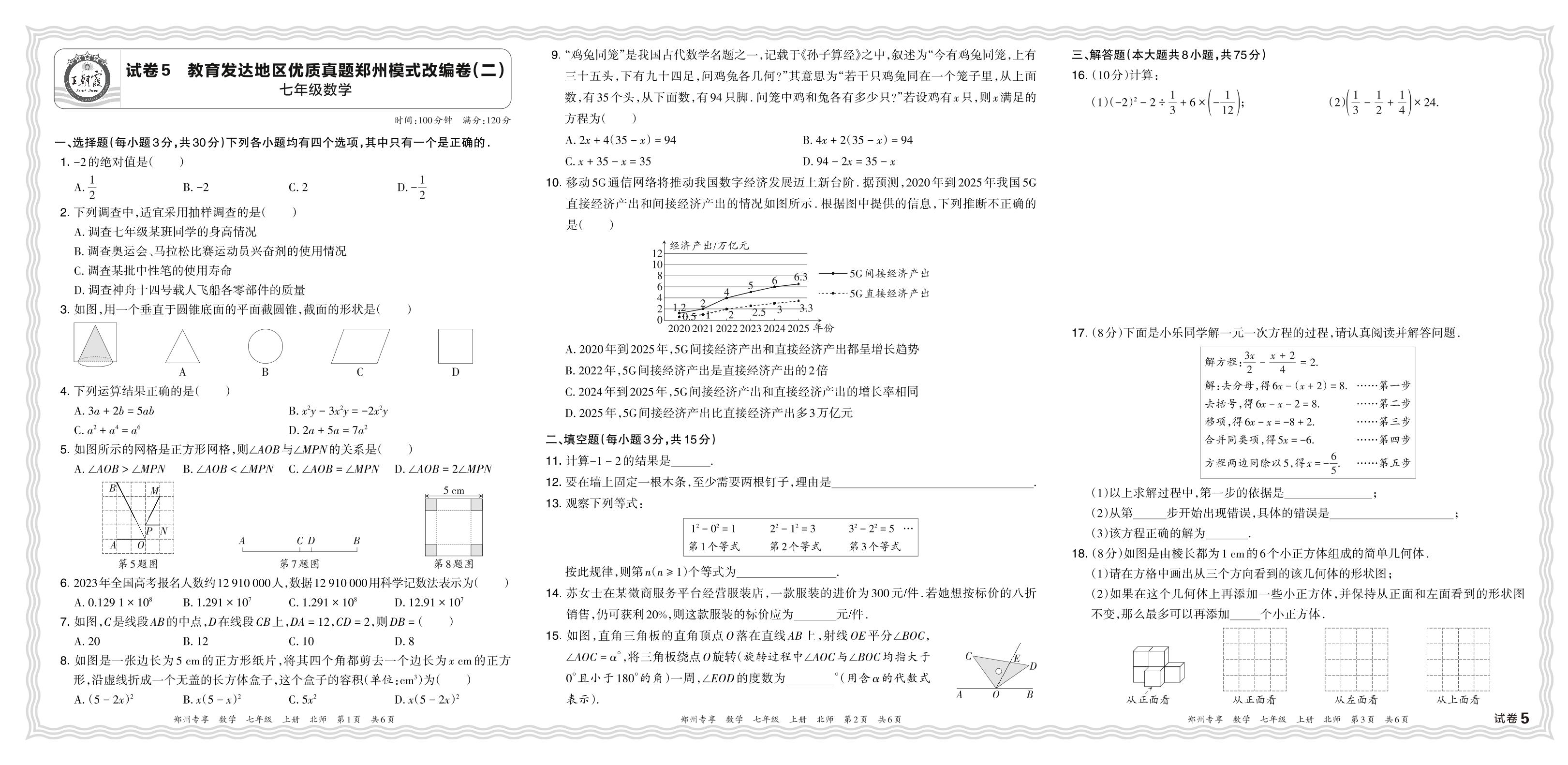 2023年秋教育发达地区优质真题河南郑州模式改编卷(二)七年级上册期末数学(北师版)【5】