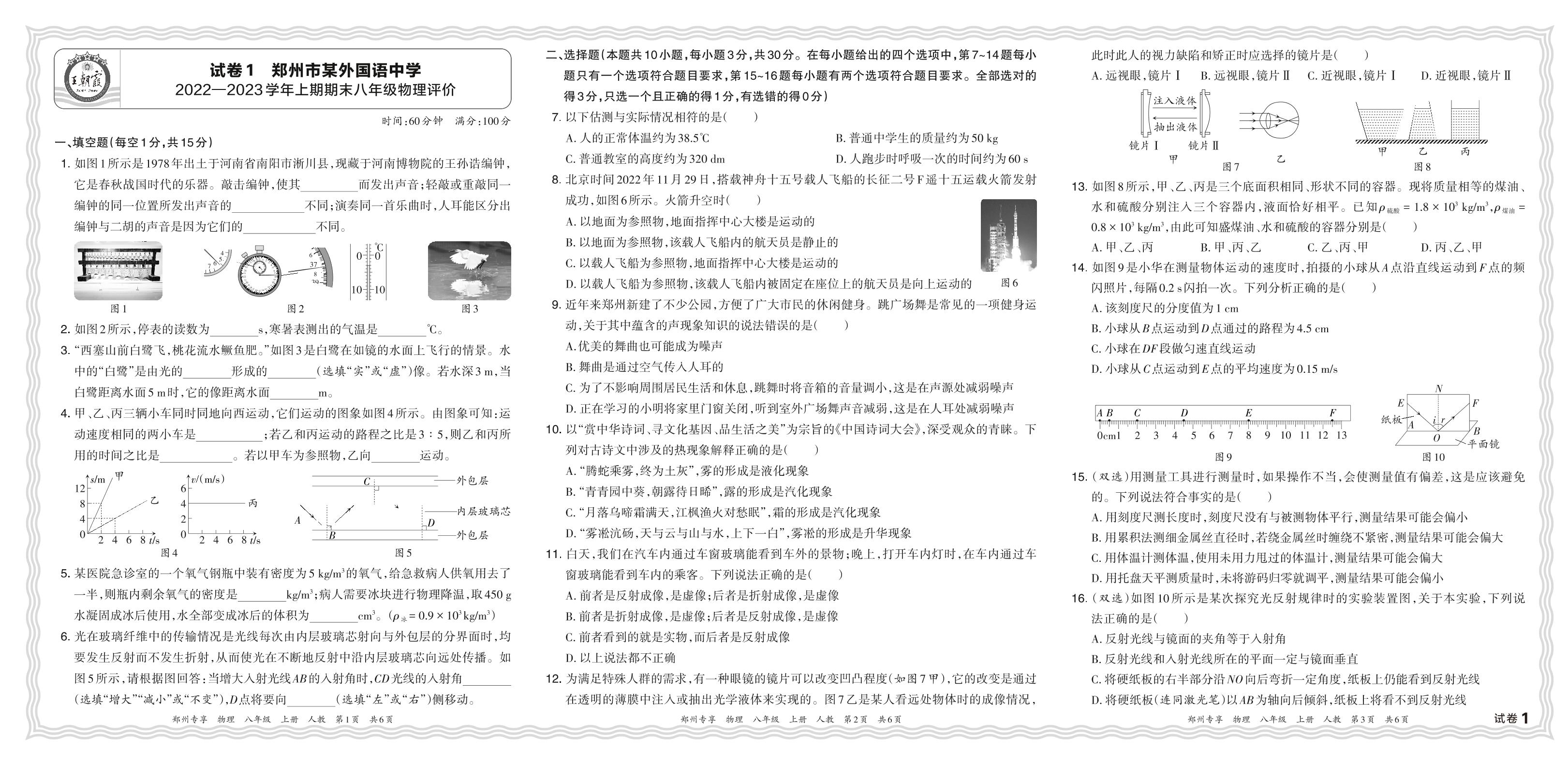 河南省郑州市某外国语中学2022—2023学年上期期未八年级物理评价(人教版)【1】