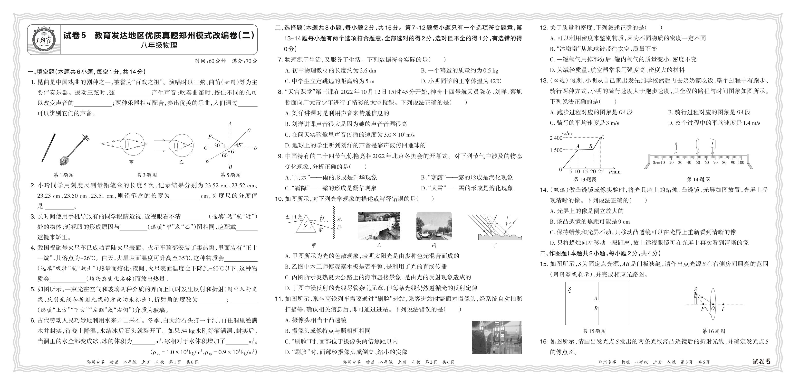 2023秋教育发达地区优质真题河南郑州模式改编卷(二)八年级上册期末物理(人教版)【5】