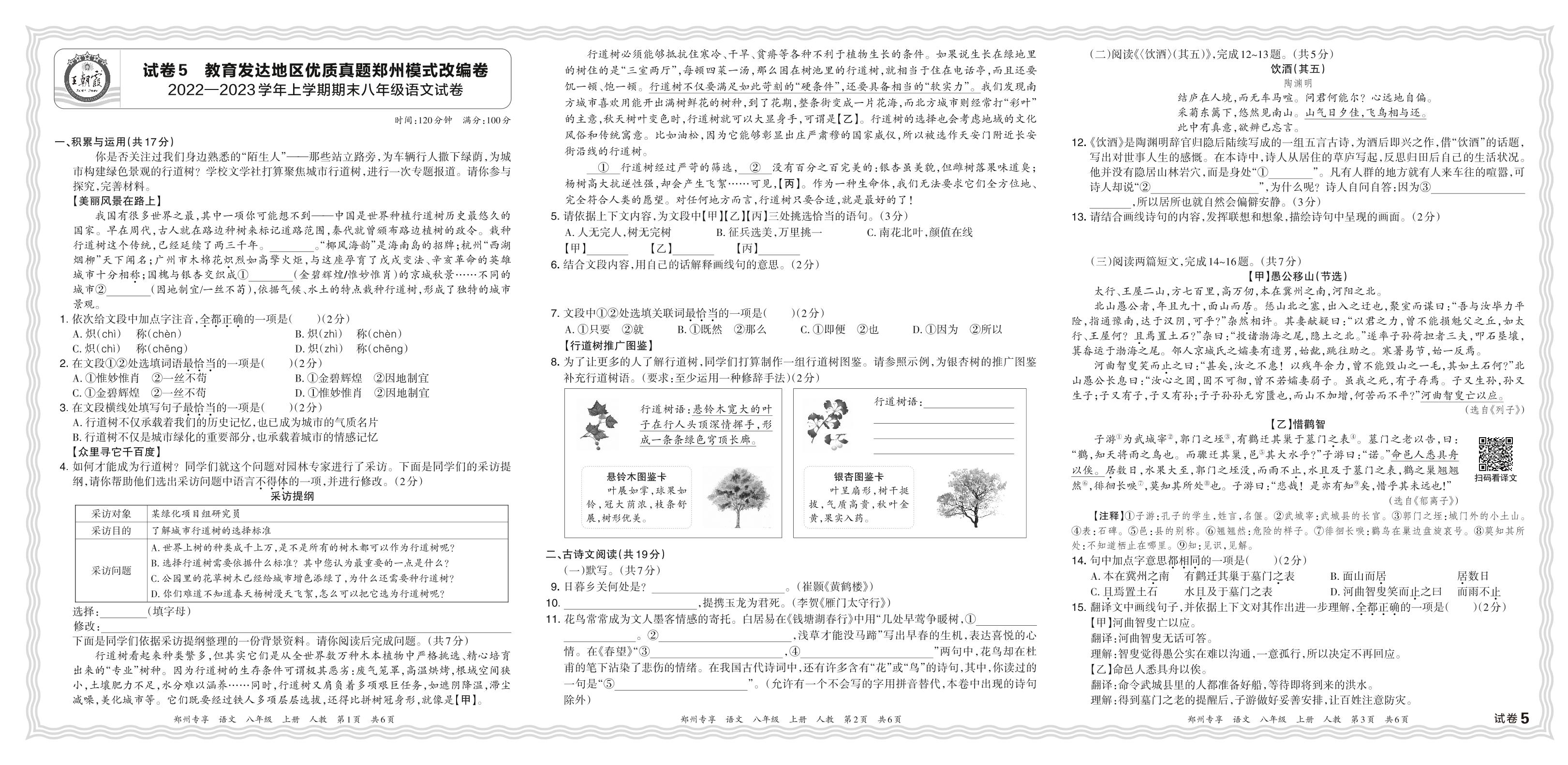 教育发达地区优质真题河南郑州模式改编卷2022—2023学年上学期期末八年级语文试卷(人教版)【5】