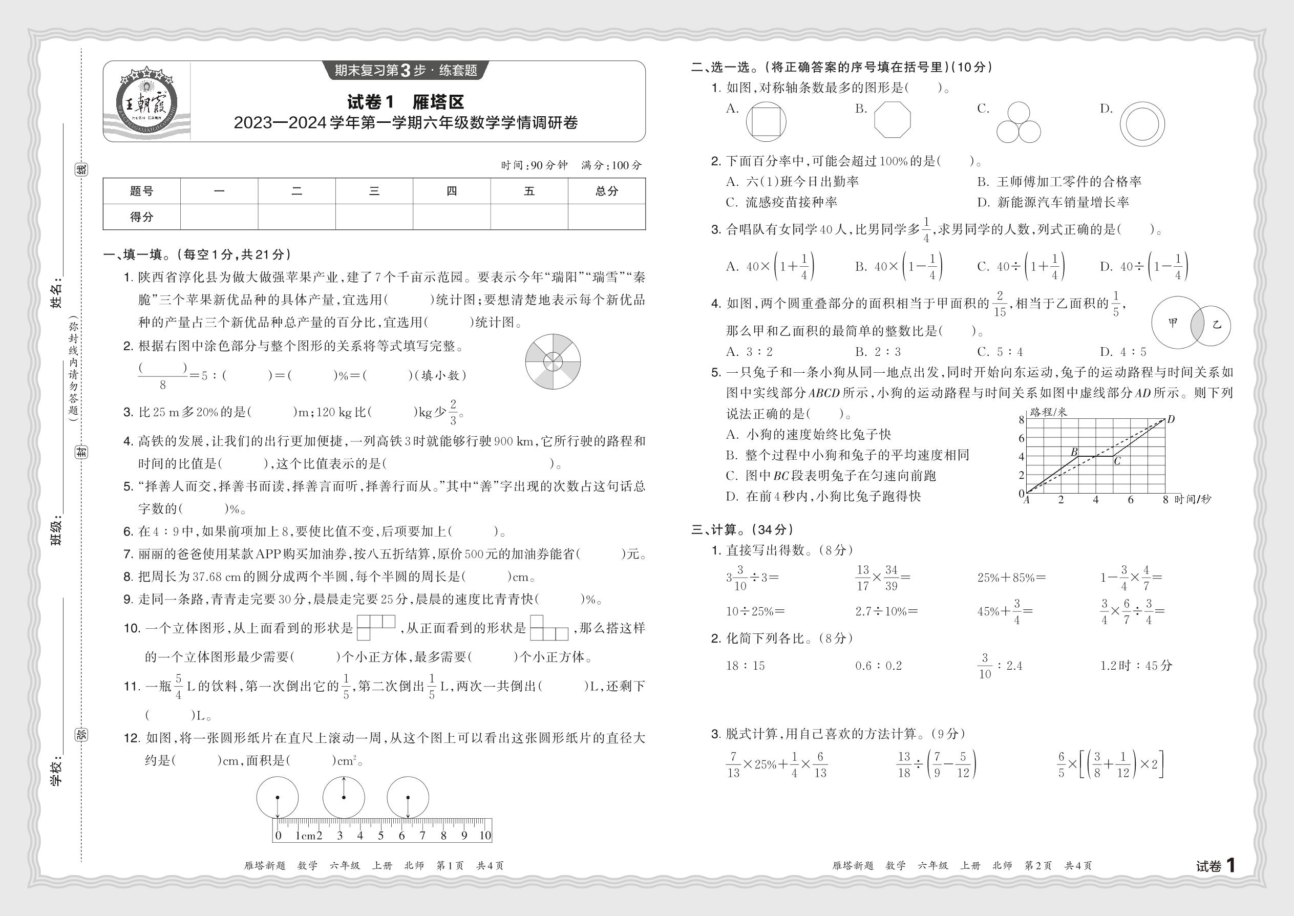 陕西省西安市雁塔区2023—2024学年第一学期六年级数学学情调研卷(北师版)【1】
