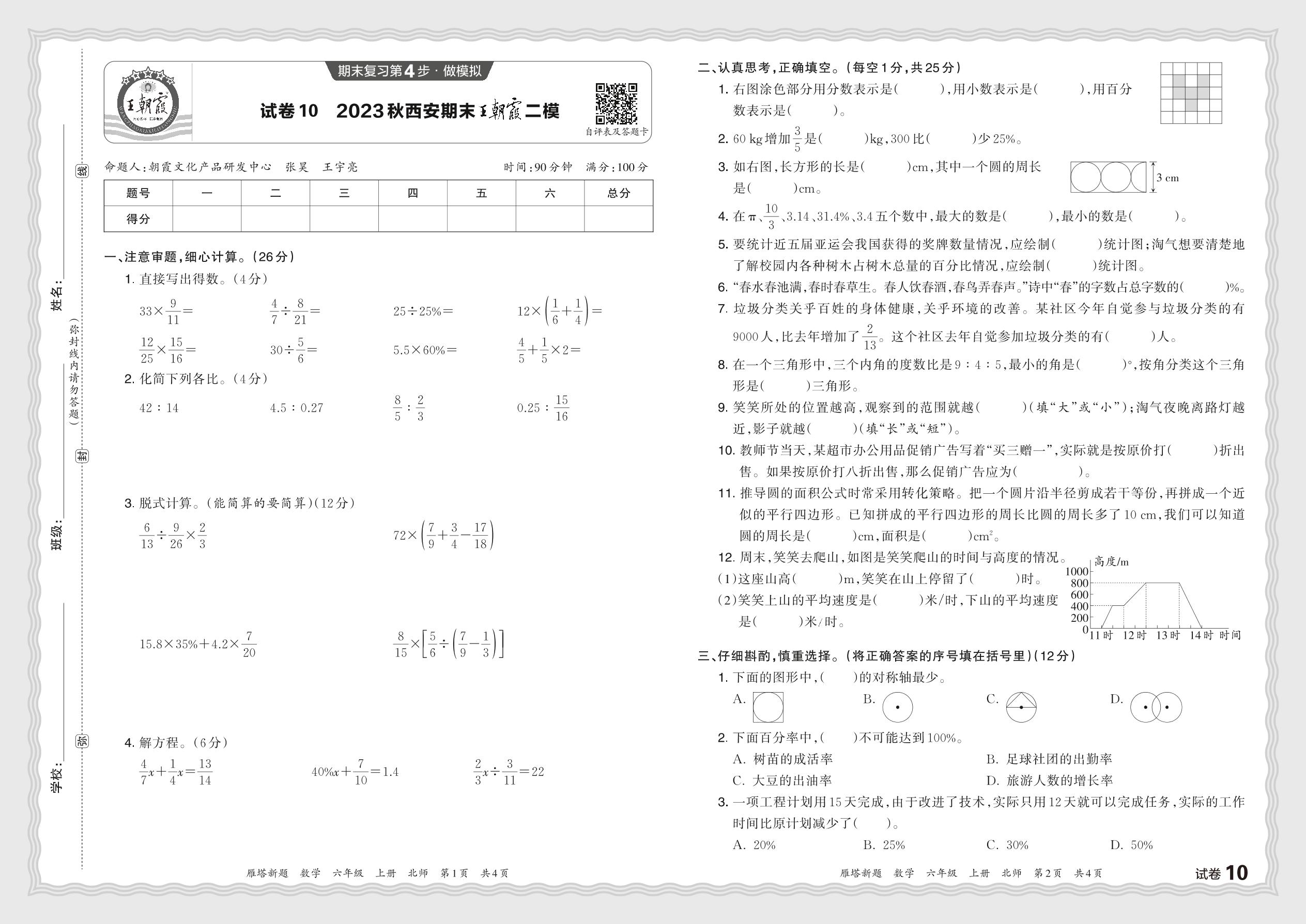 2023秋上册六年级数学北师版 陕西西安期末王朝霞二模