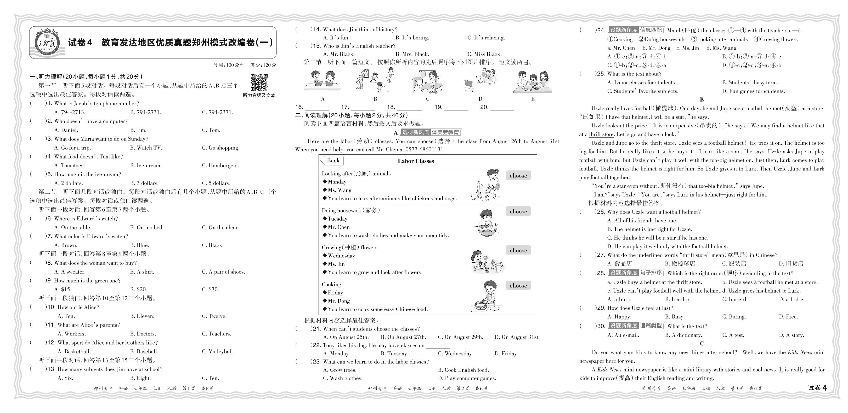 2023秋教育发达地区优质真题河南郑州模式改编卷(一)七年级上册期末英语(人教版)【4】
