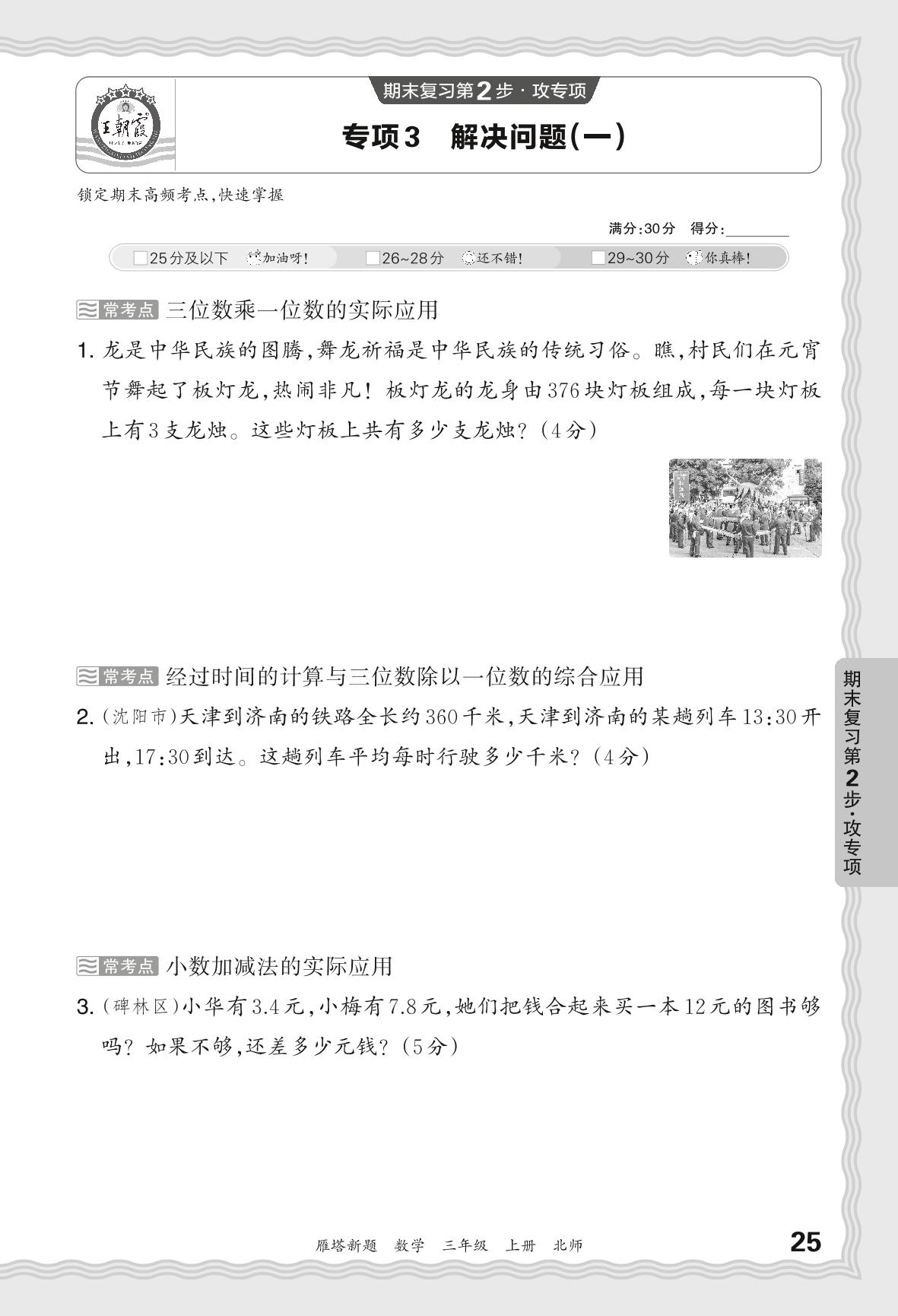 2023秋上册三年级数学北师版 期末专项·解决问题(一)【3】