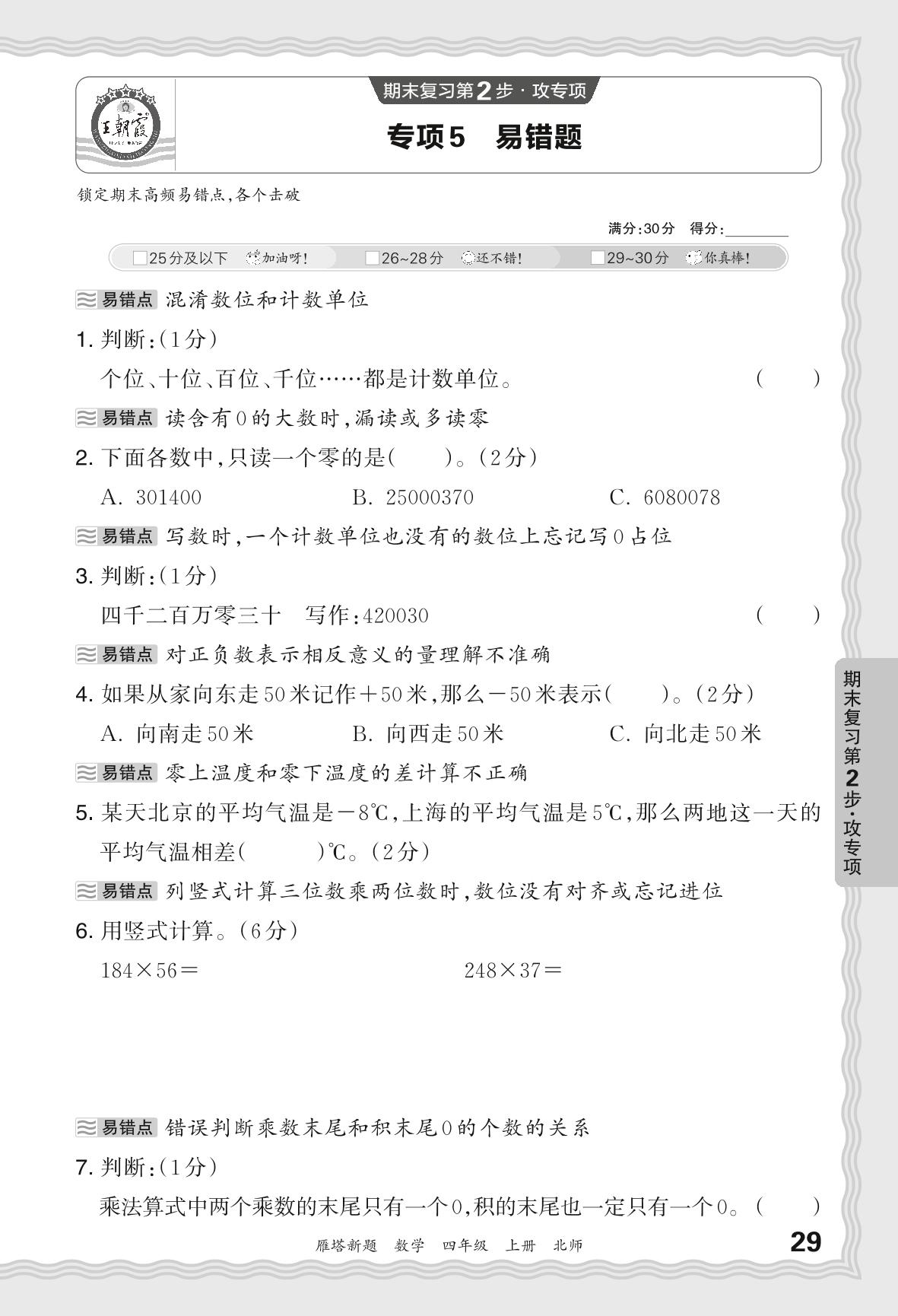 2023秋上册四年级数学北师版 期末专项·易错题【5】