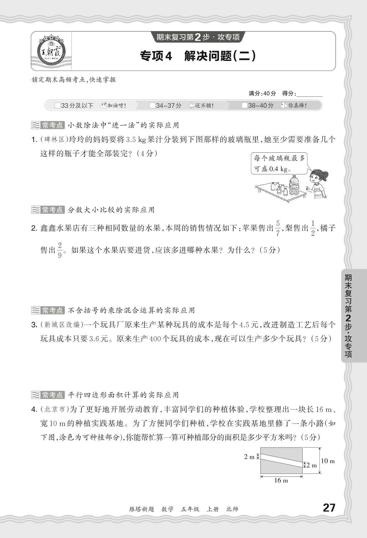 2023秋上册五年级数学北师版 期末专项·解决问题(二)【4】