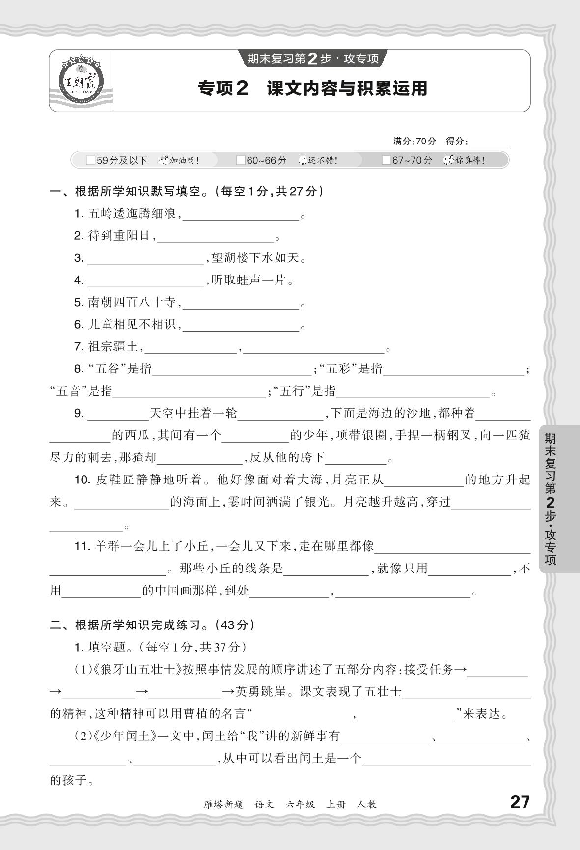 2023秋上册六年级语文人教版 期末专项·课文内容与积累运用_R231128161132586【2】
