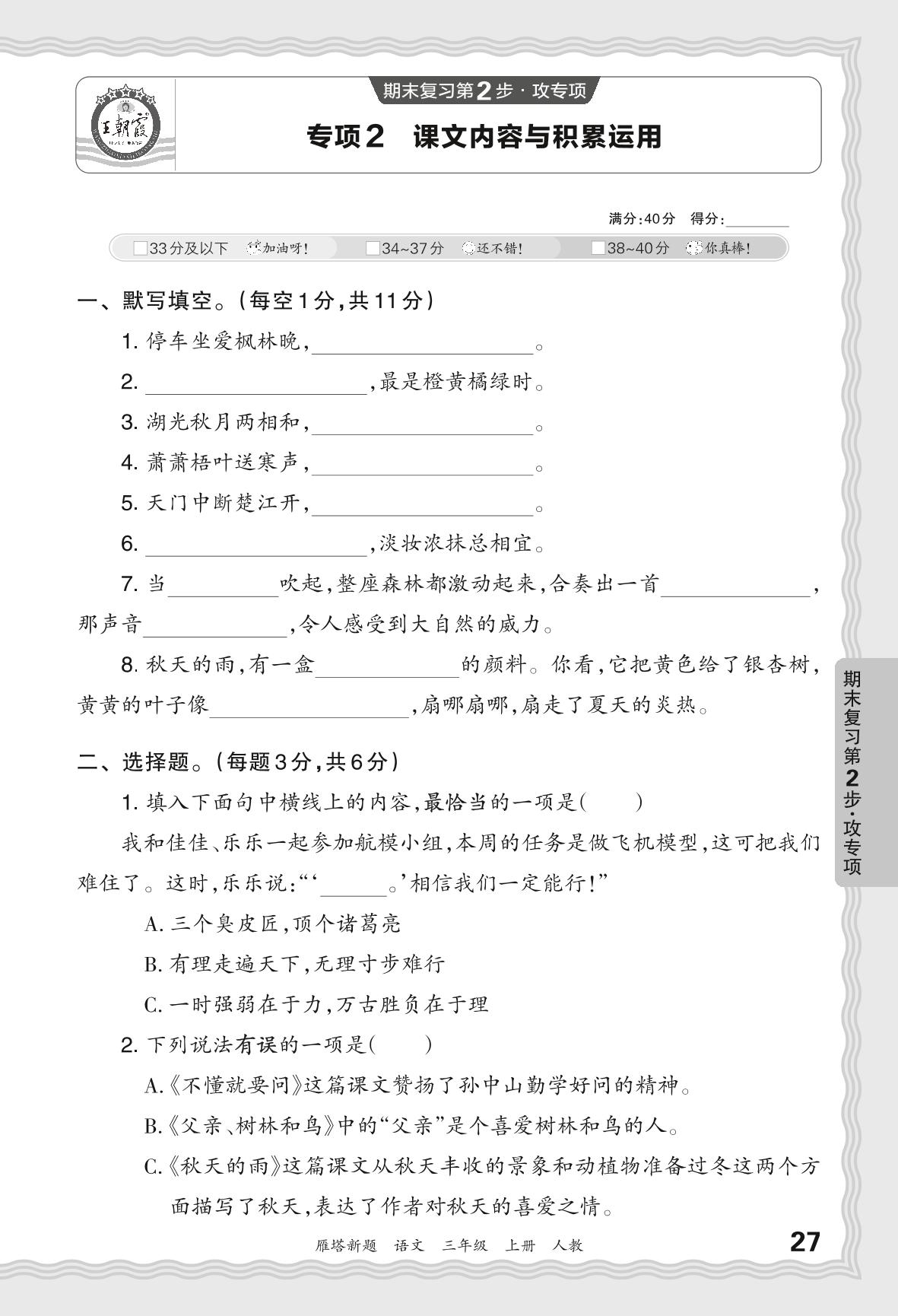2023秋上册三年级语文人教版 期末专项·课文内容与积累运用_R231128162516447【2】