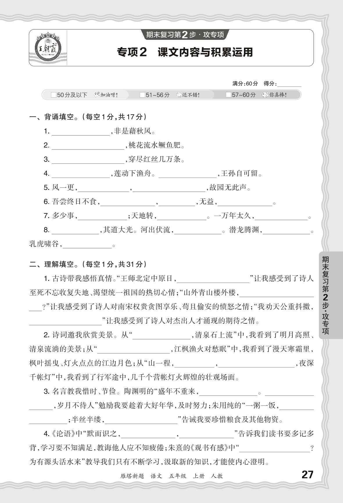 2023秋上册五年级语文人教版 期末专项·课文内容与积累运用_R231128163231332【2】